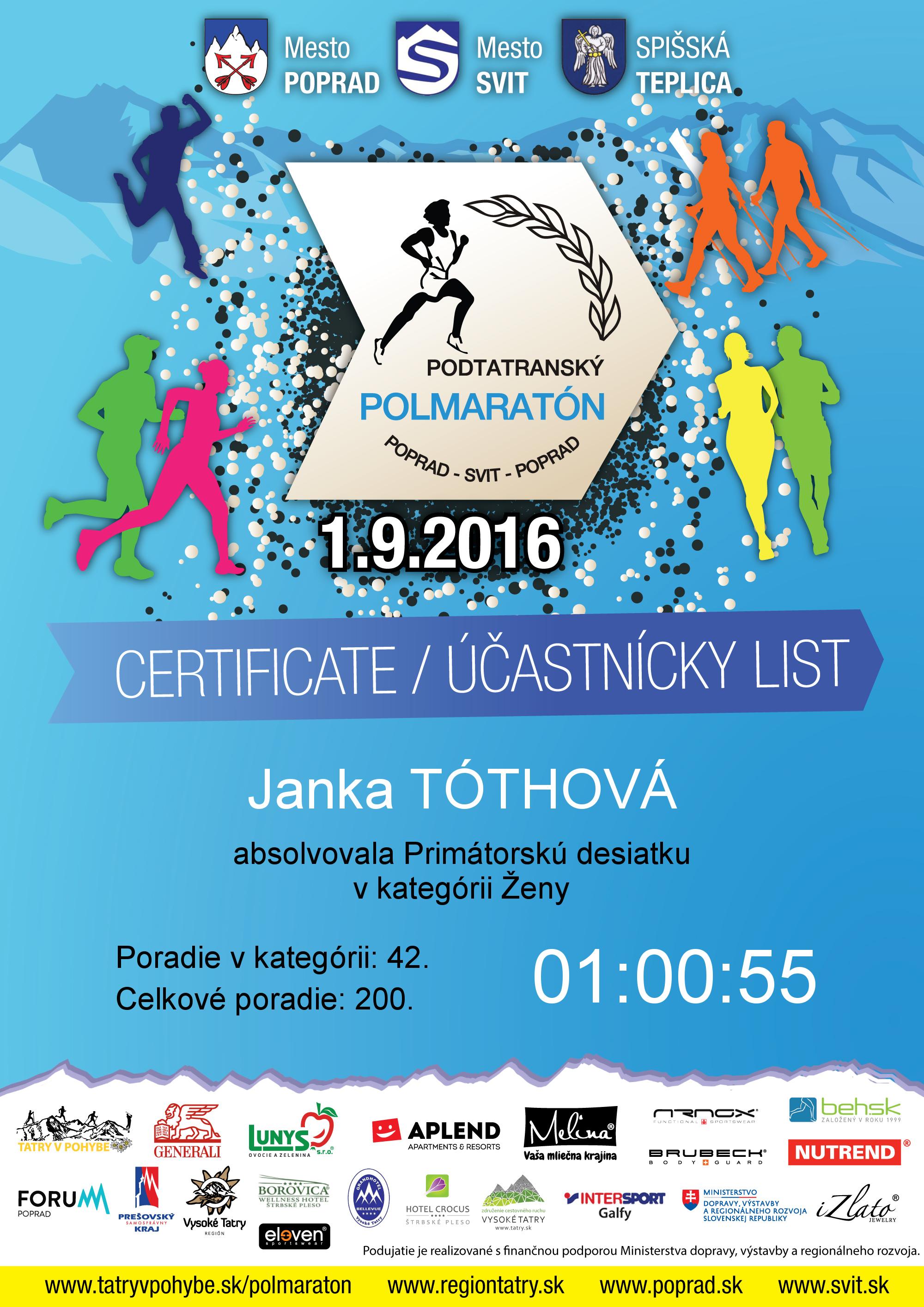 Účastnícky list pretekára TÓTHOVÁ Janka
