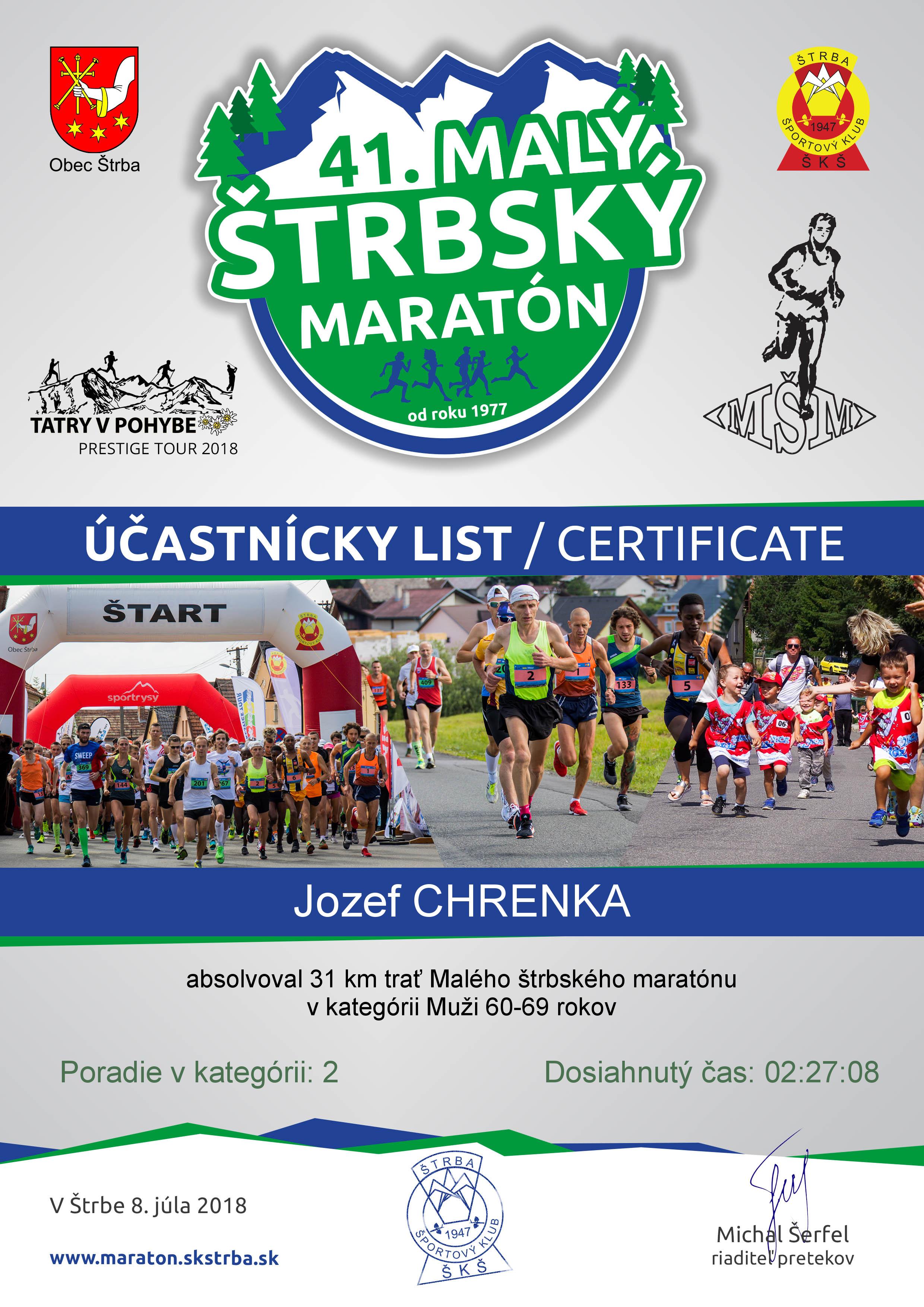Účastnícky list pretekára CHRENKA Jozef