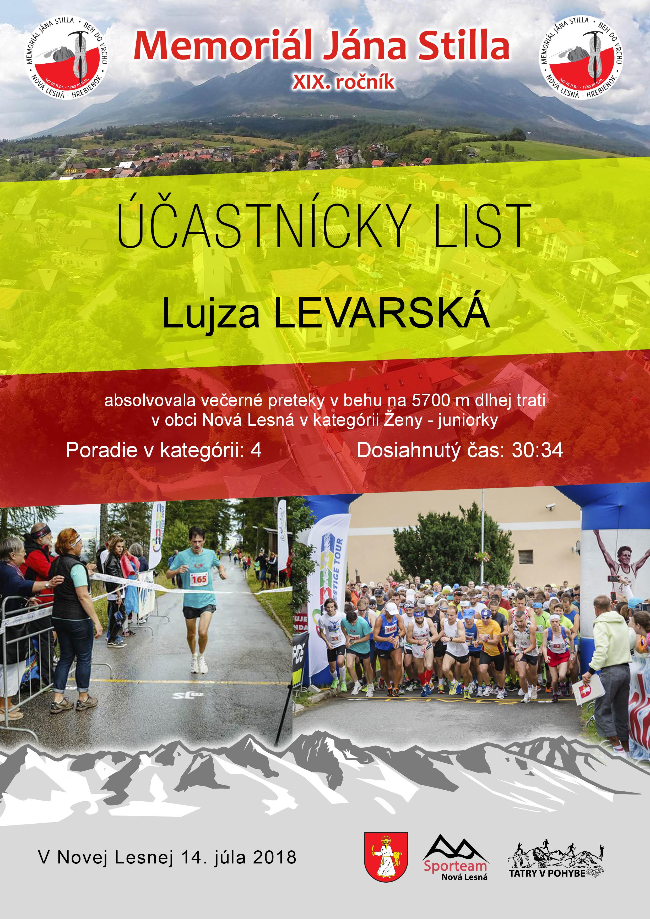 Účastnícky list pretekára LEVARSKÁ Lujza