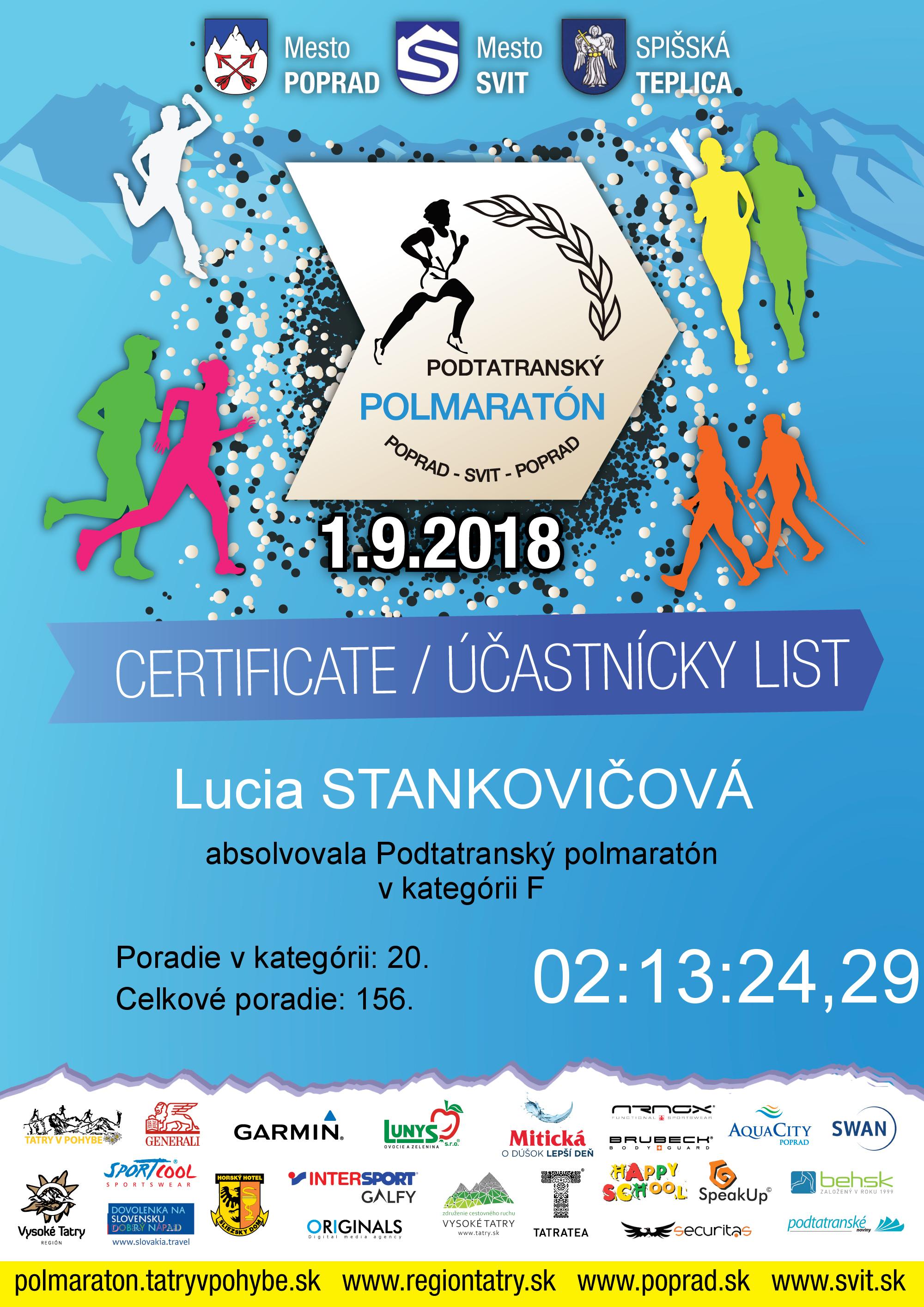 Účastnícky list pretekára STANKOVIČOVÁ Lucia