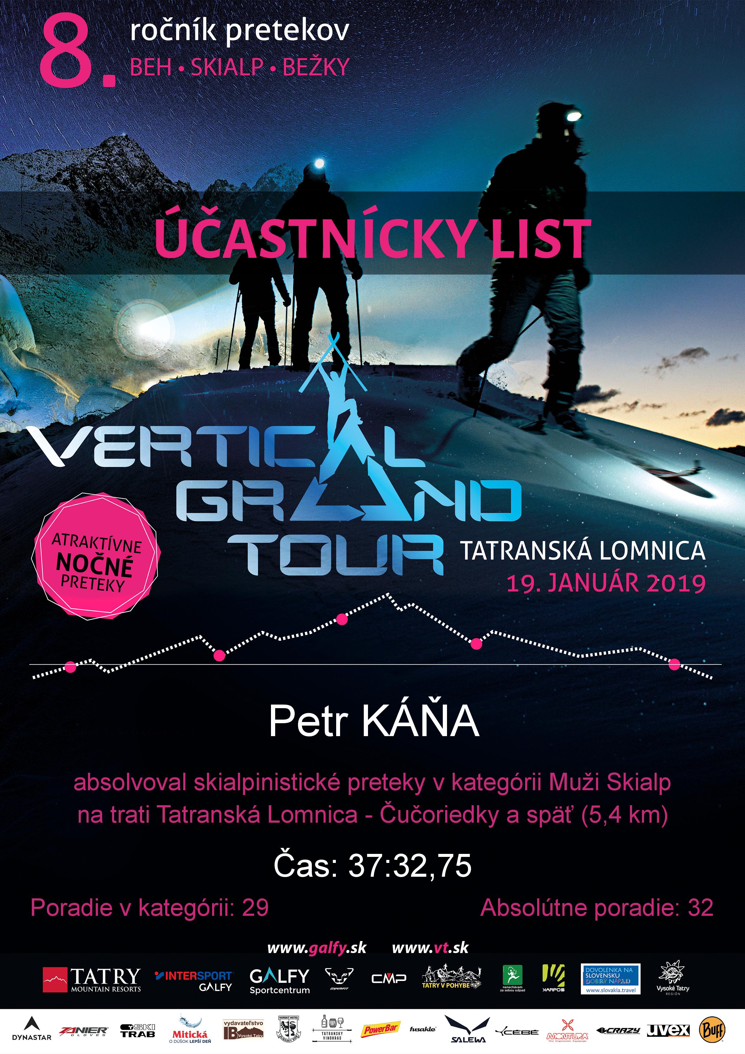 Účastnícky list pretekára KÁŇA Petr