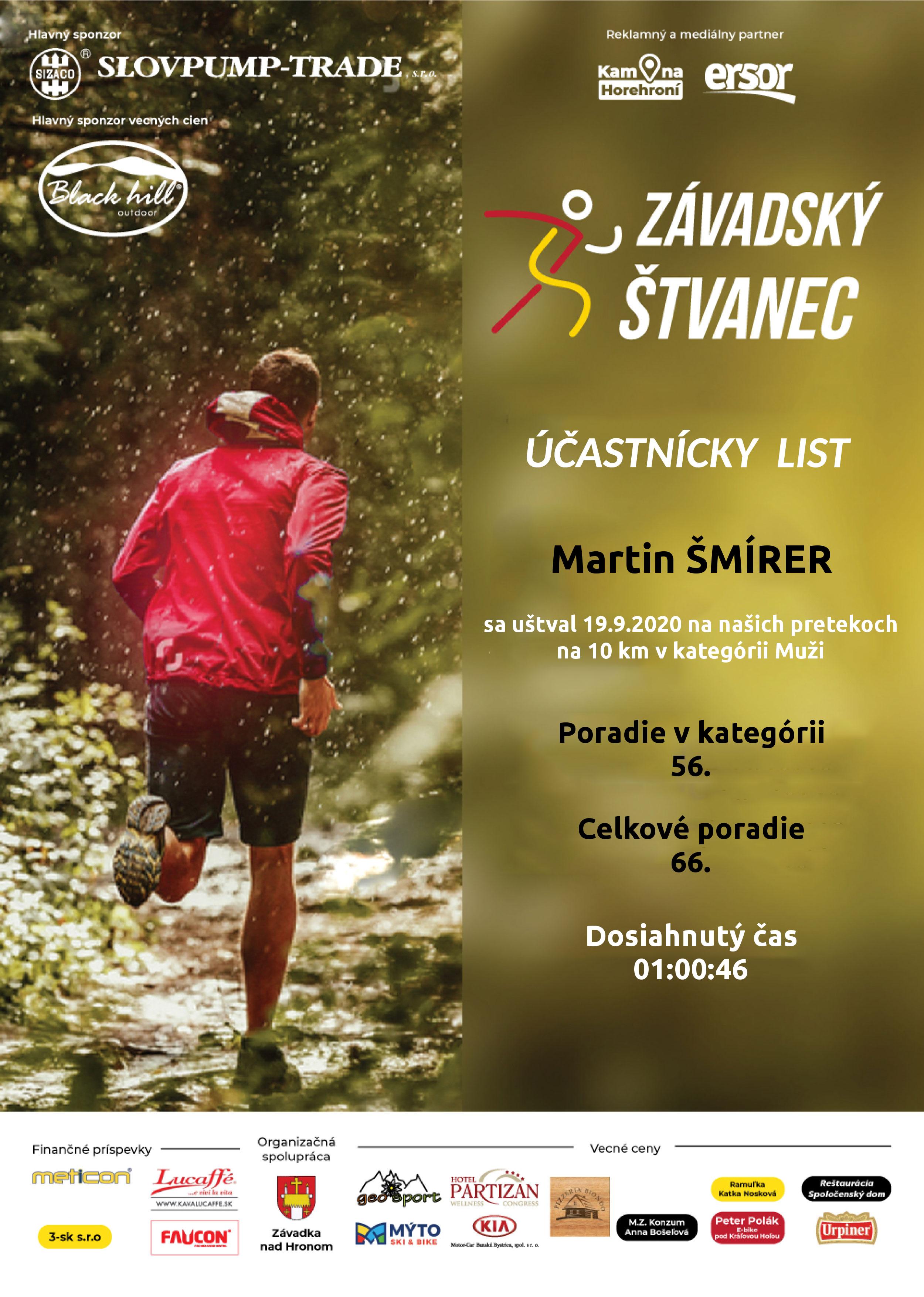 Účastnícky list pretekára ŠMÍRER Martin