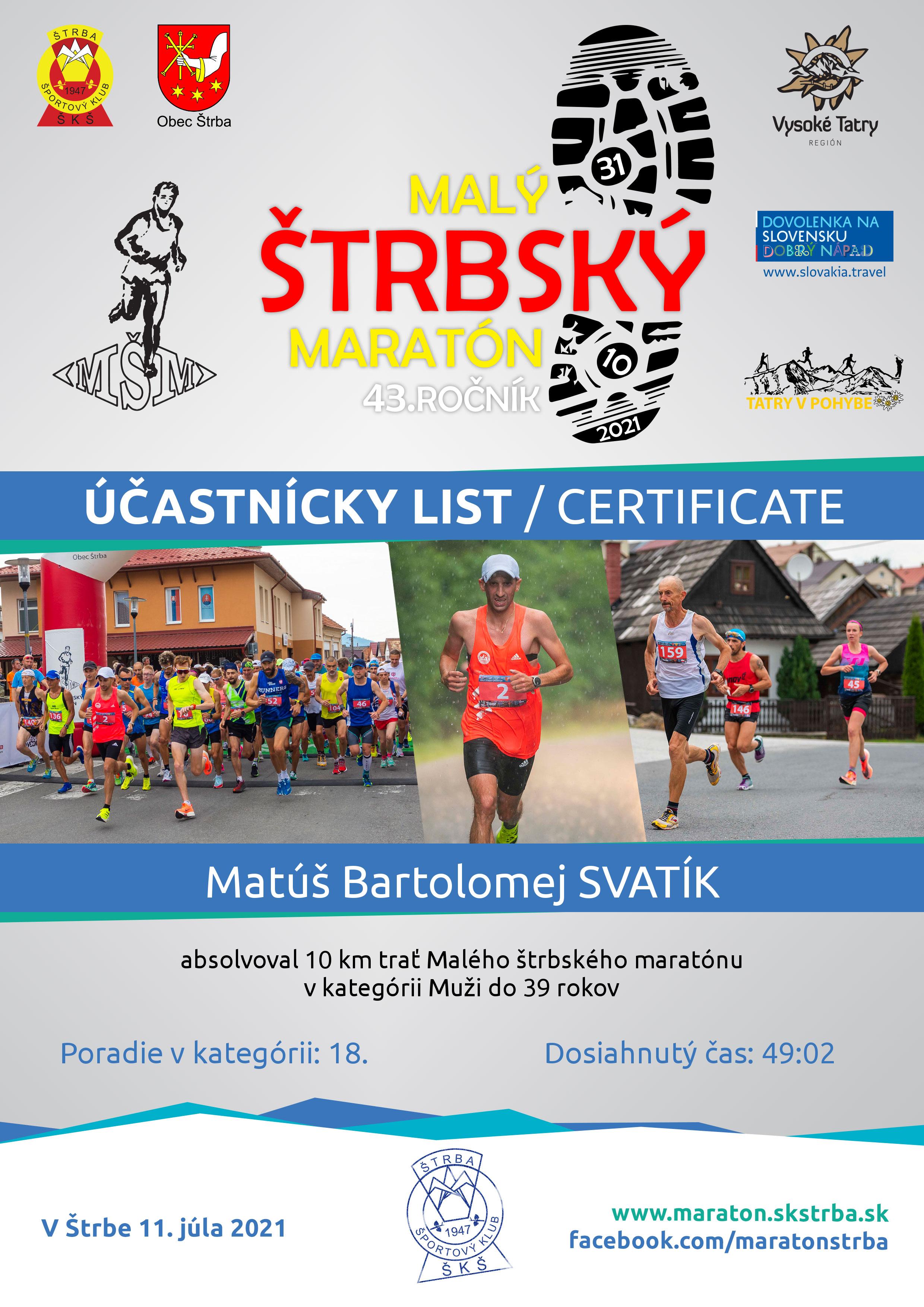 Účastnícky list pretekára SVATÍK Matúš Bartolomej