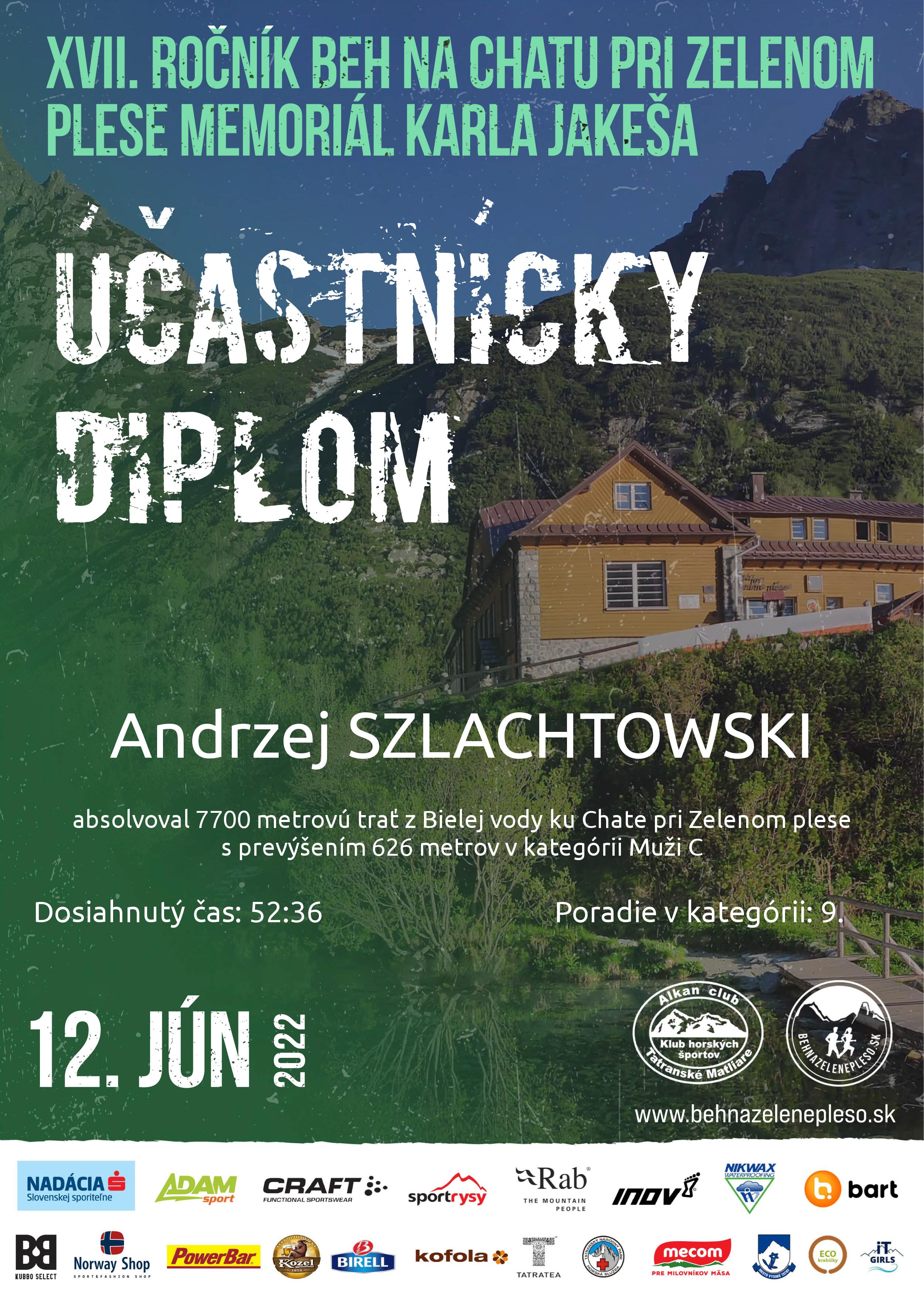 Účastnícky list pretekára SZLACHTOWSKI Andrzej