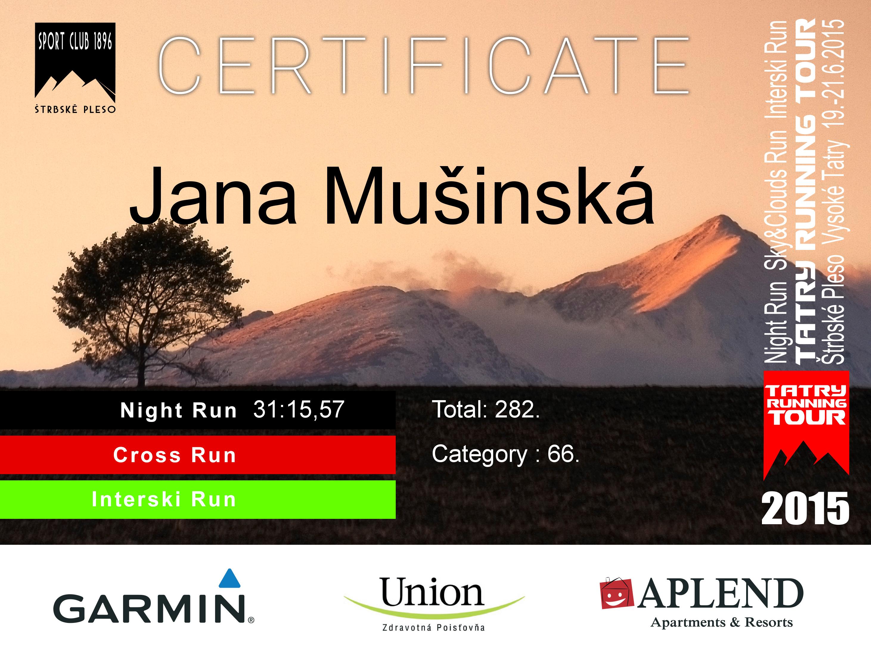 Účastnícky list: Mušinská Jana