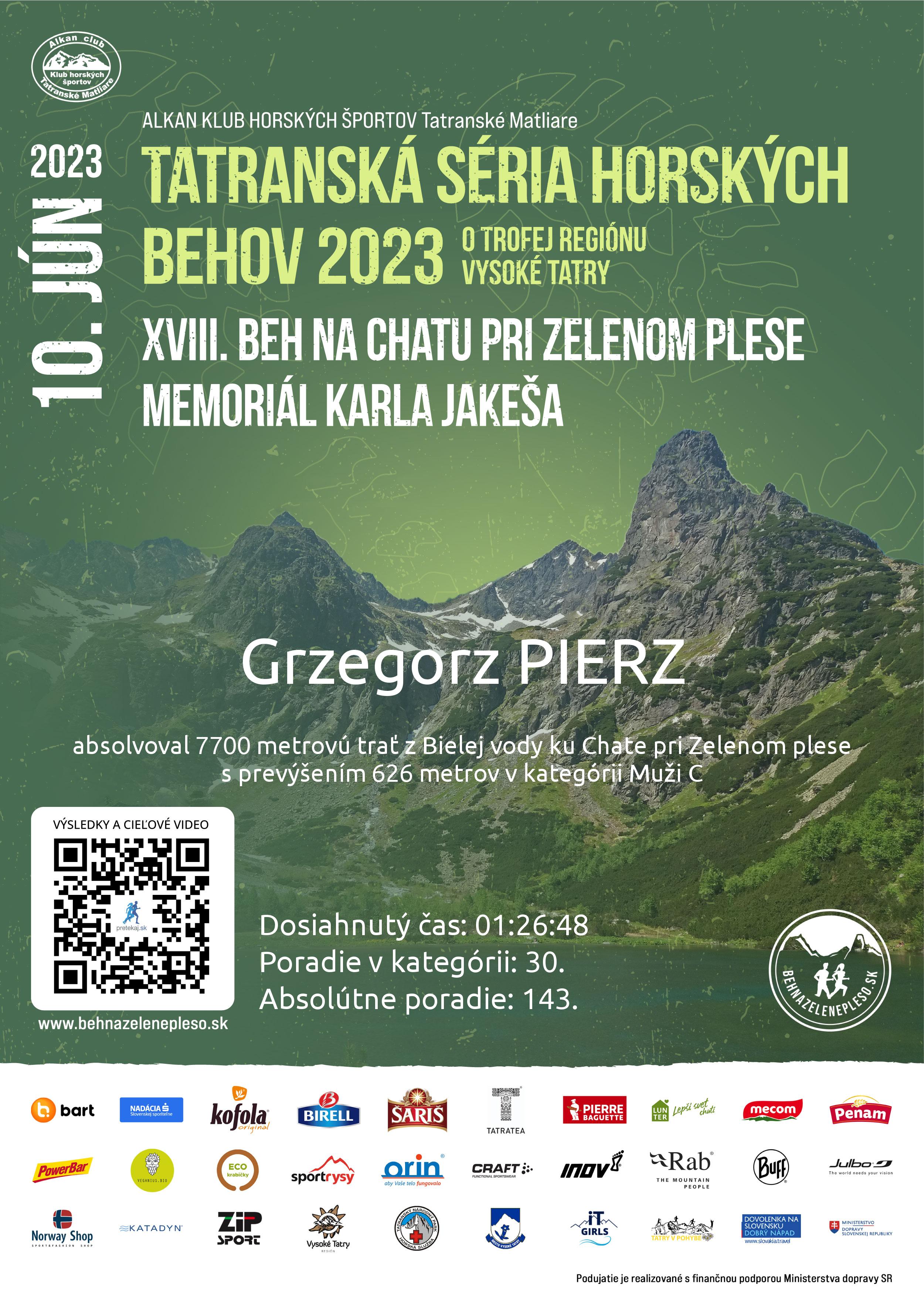 Účastnícky list pretekára PIERZ Grzegorz