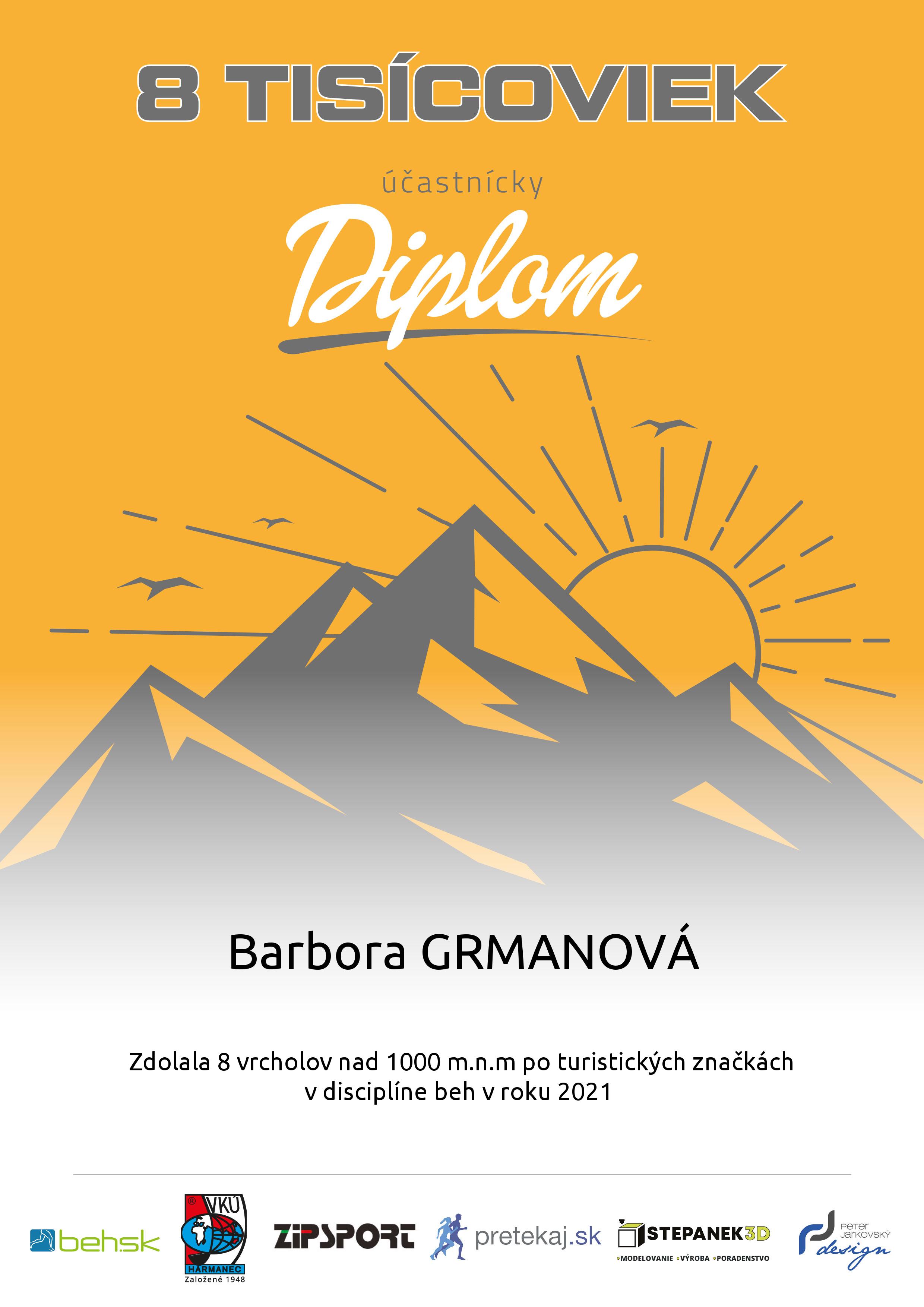 Účastnícky list pretekára GRMANOVÁ Barbora