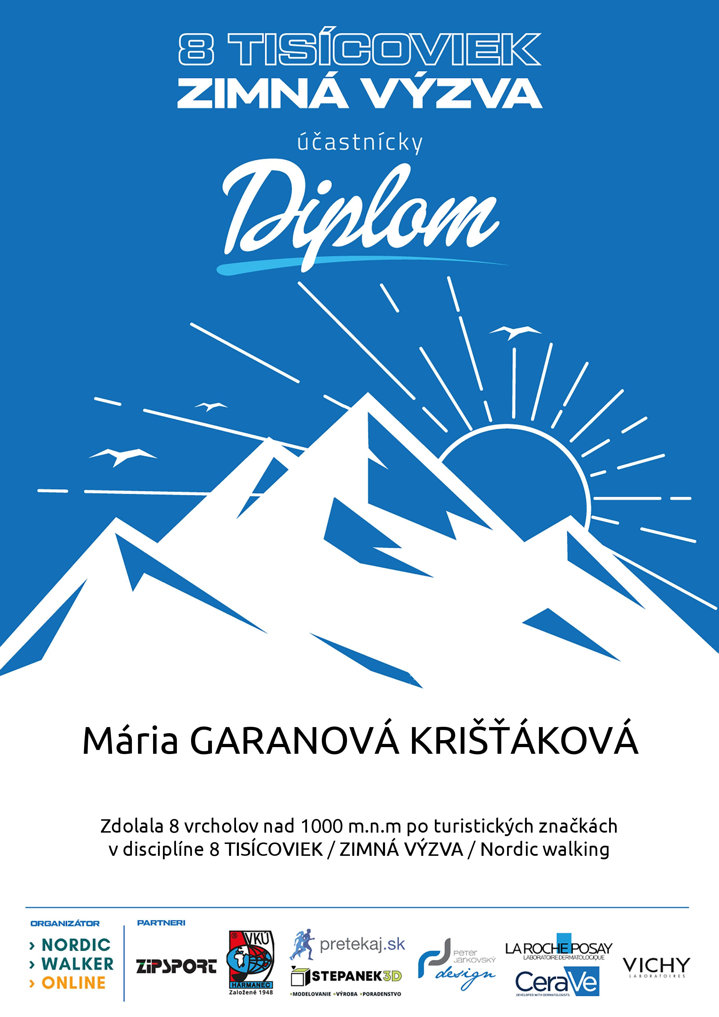 Účastnícky list pretekára GARANOVÁ KRIŠŤÁKOVÁ Mária