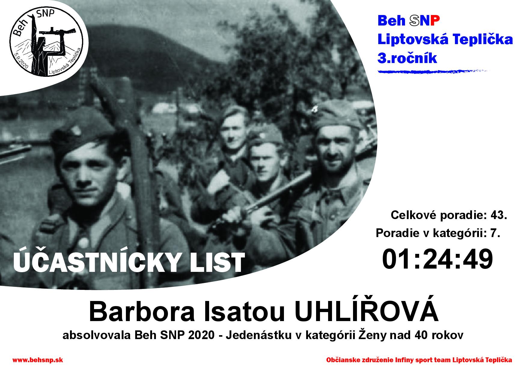 Účastnícky list pretekára UHLÍŘOVÁ Barbora Isatou