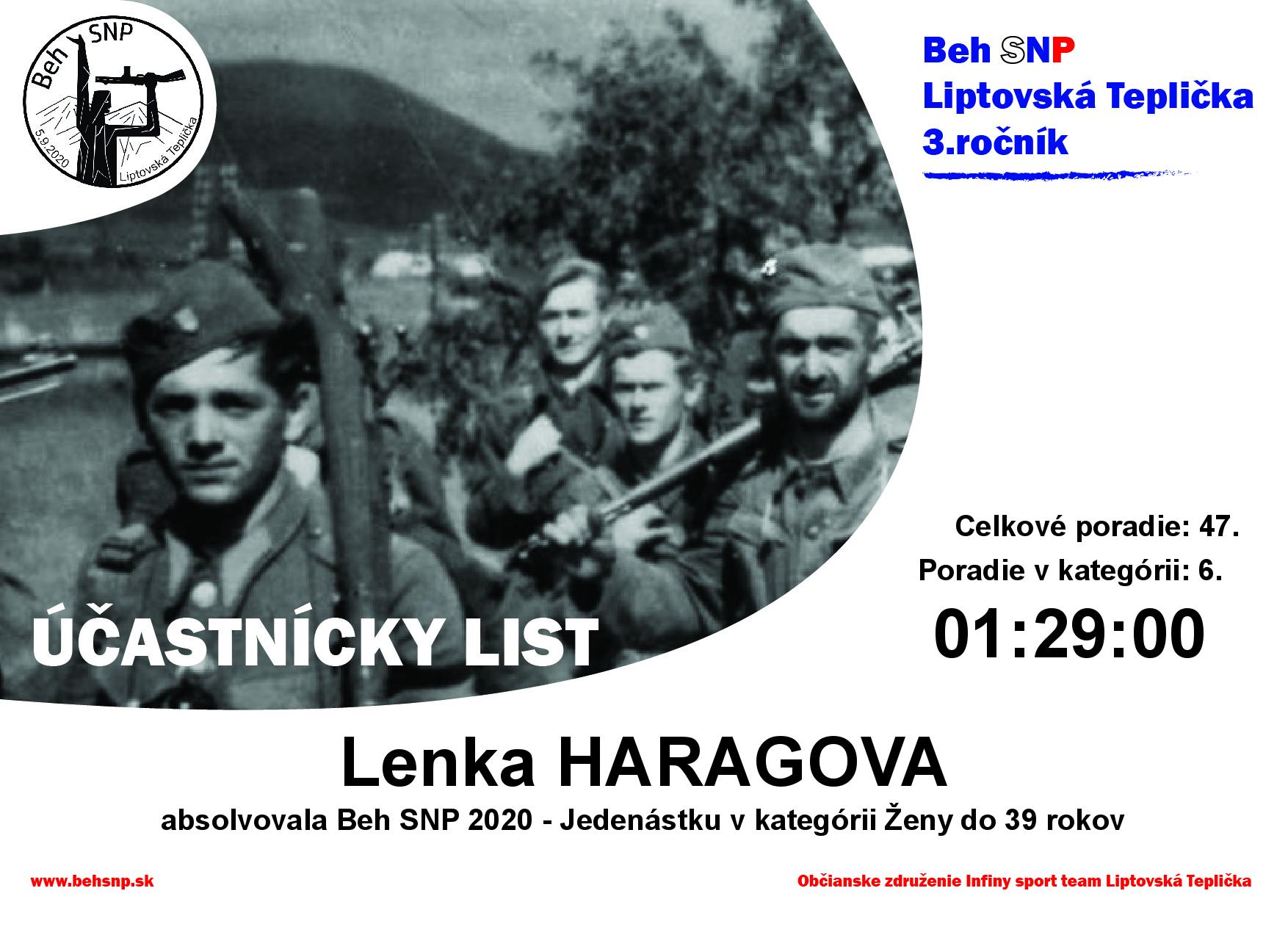 Účastnícky list pretekára HARAGOVA Lenka