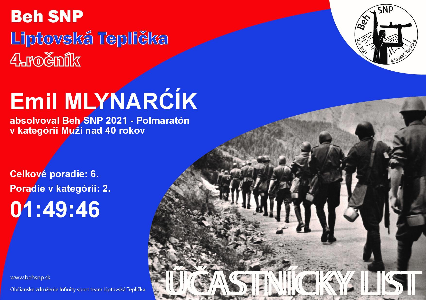 Účastnícky list pretekára MLYNARĆÍK Emil