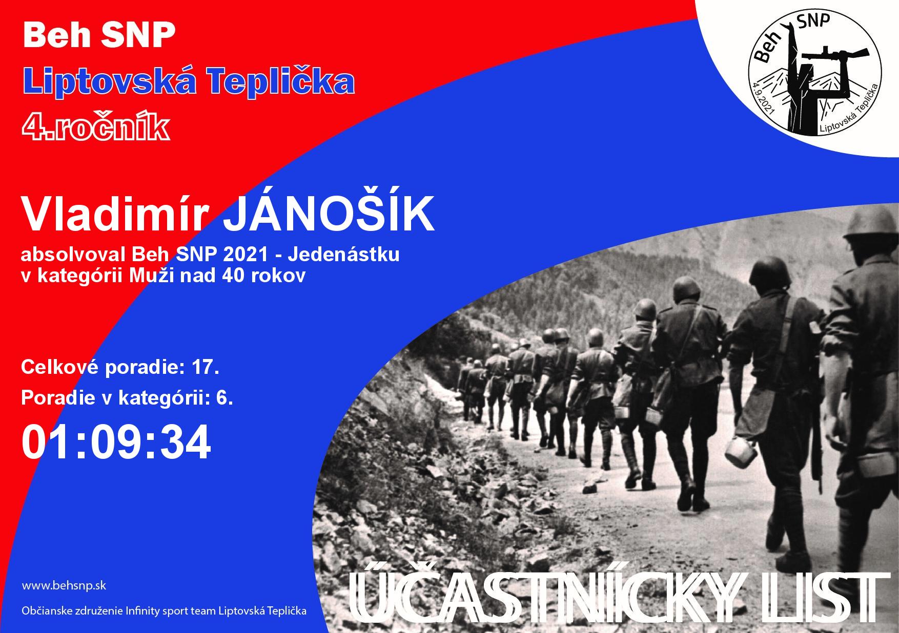 Účastnícky list pretekára JÁNOŠÍK Vladimír