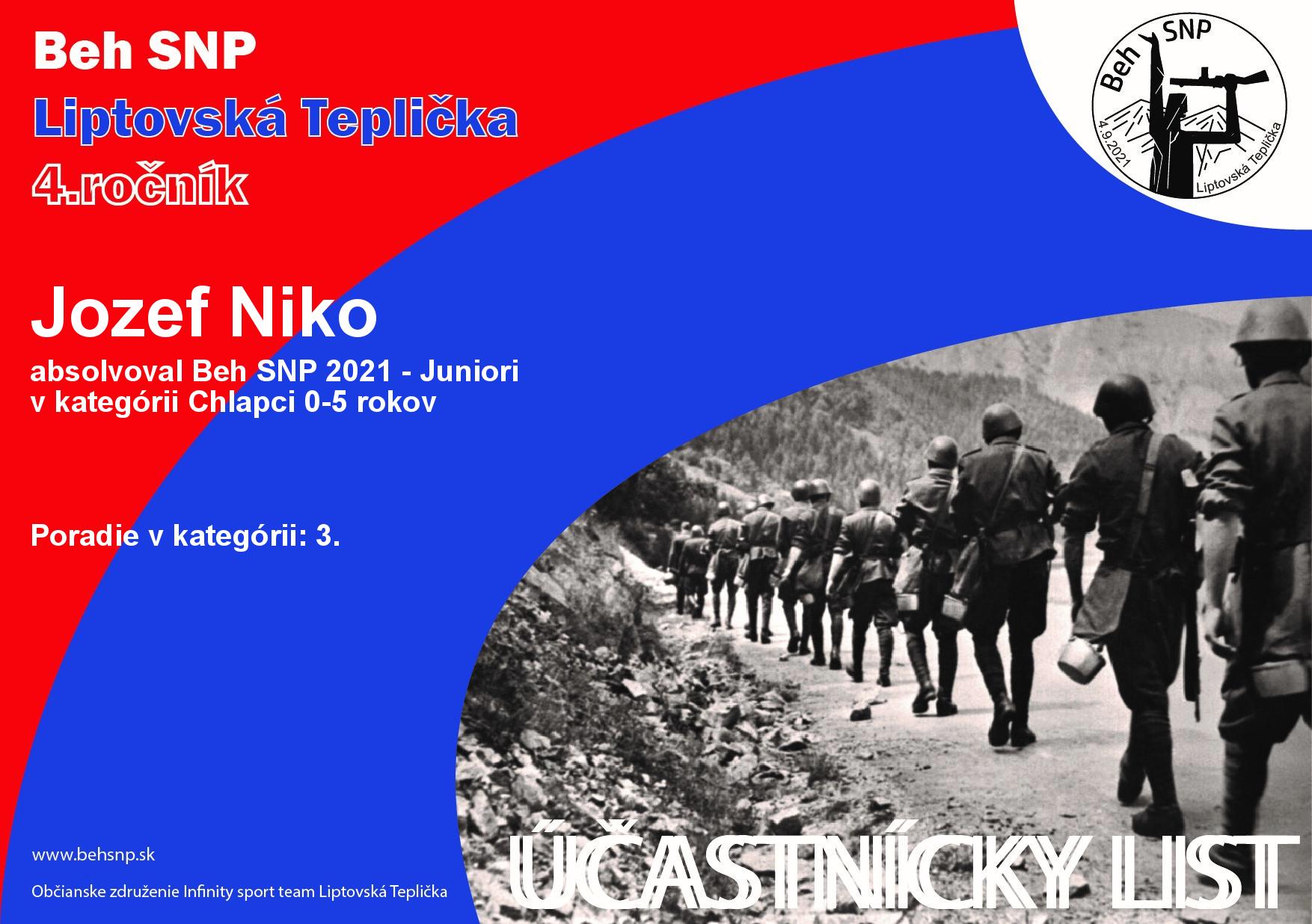 Účastnícky list pretekára Niko Jozef