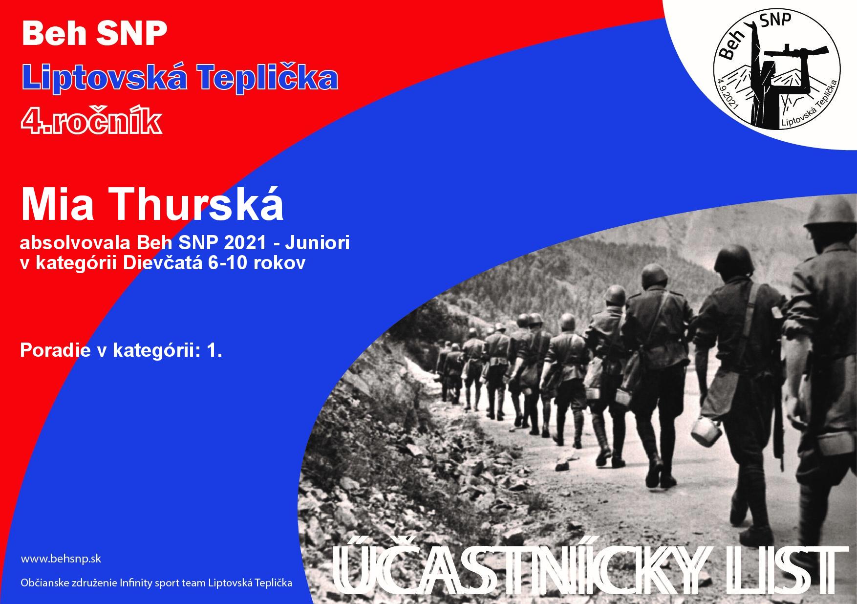 Účastnícky list pretekára Thurská Mia