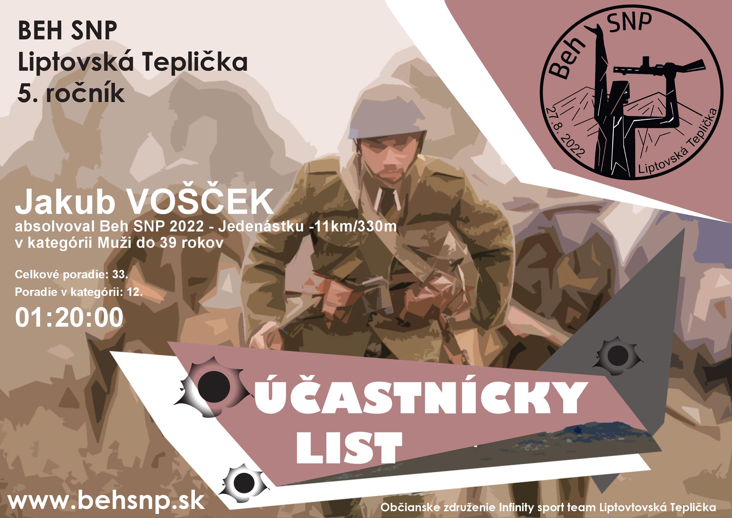 Účastnícky list pretekára VOŠČEK Jakub