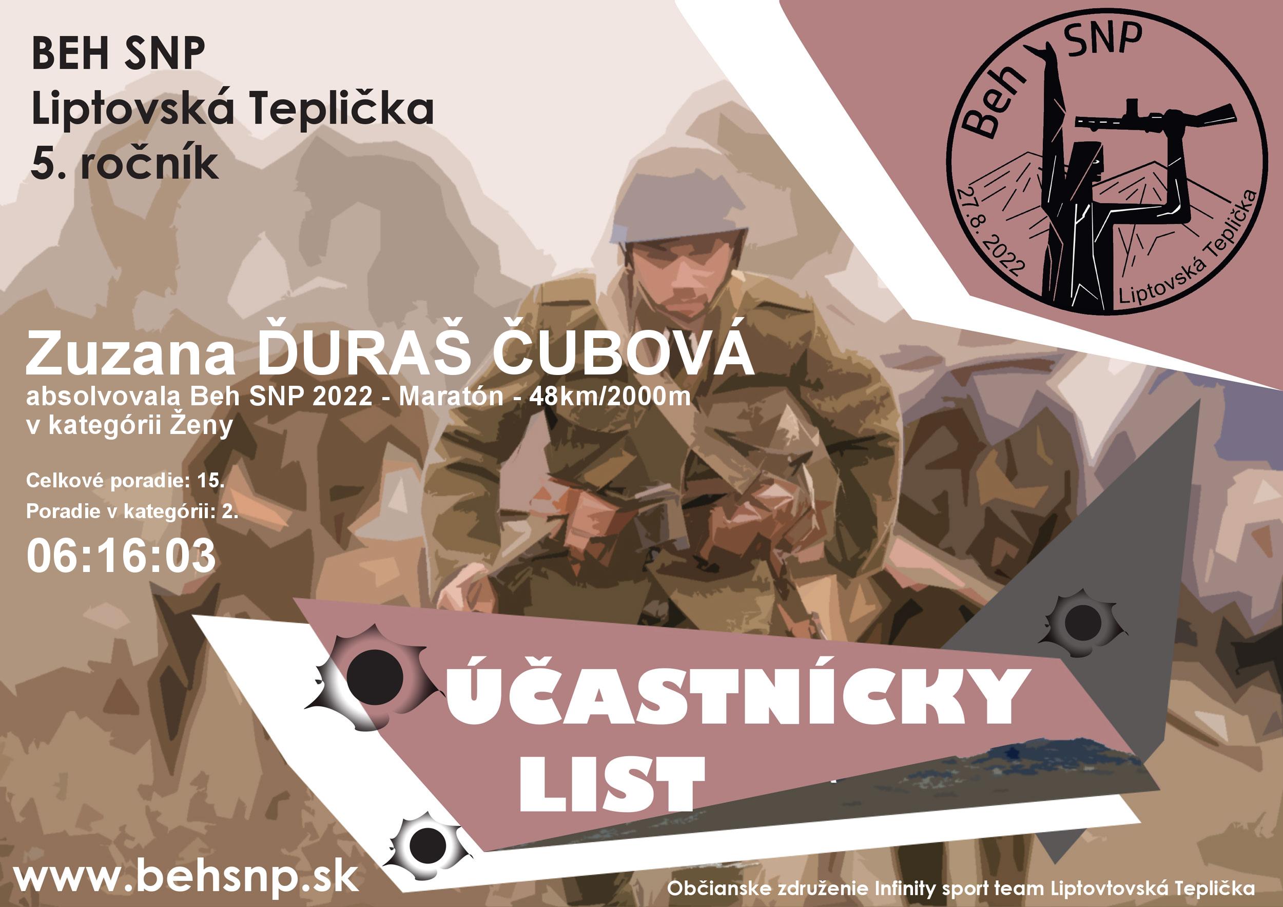 Účastnícky list pretekára ĎURAŠ ČUBOVÁ Zuzana