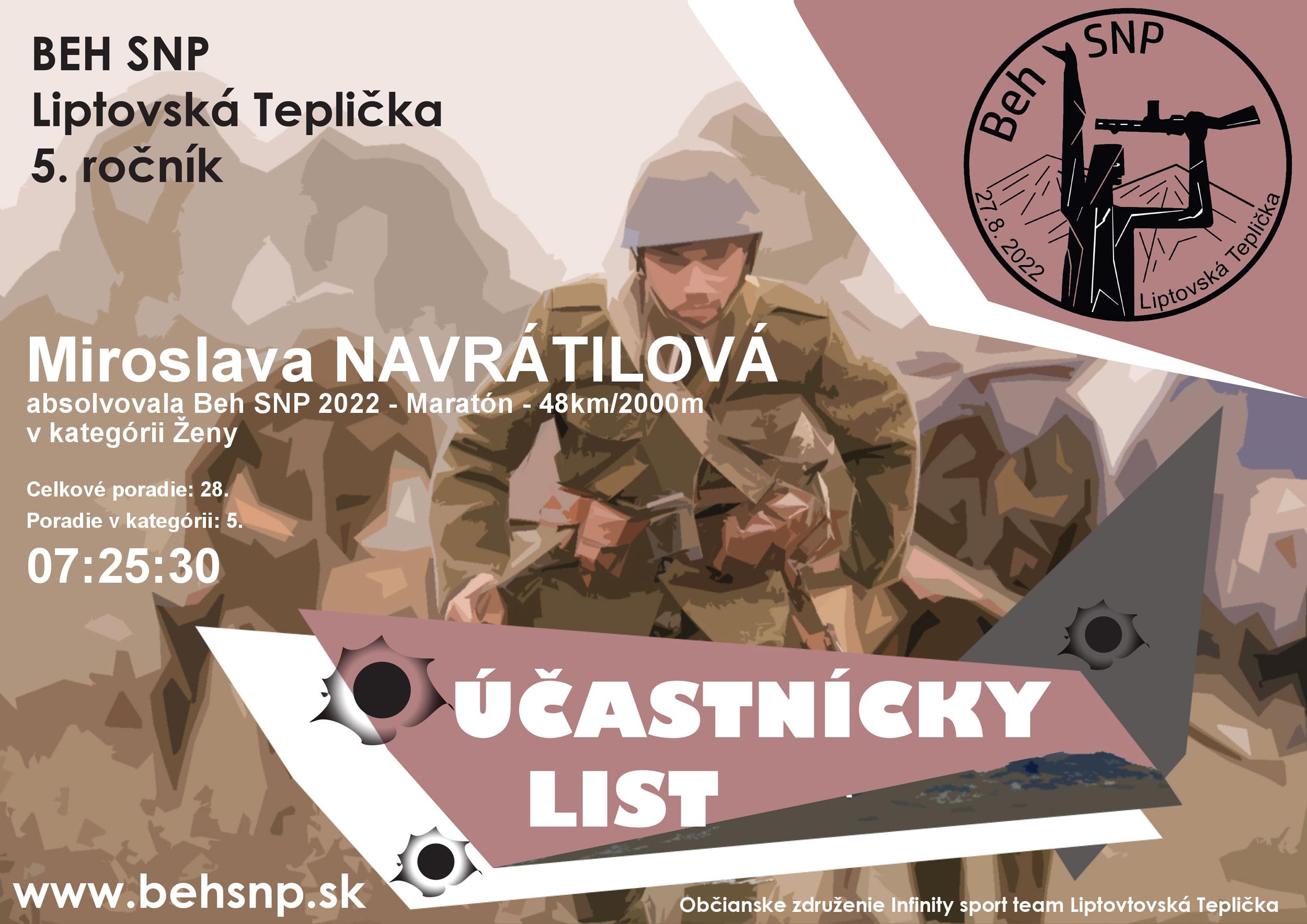 Účastnícky list pretekára NAVRÁTILOVÁ Miroslava