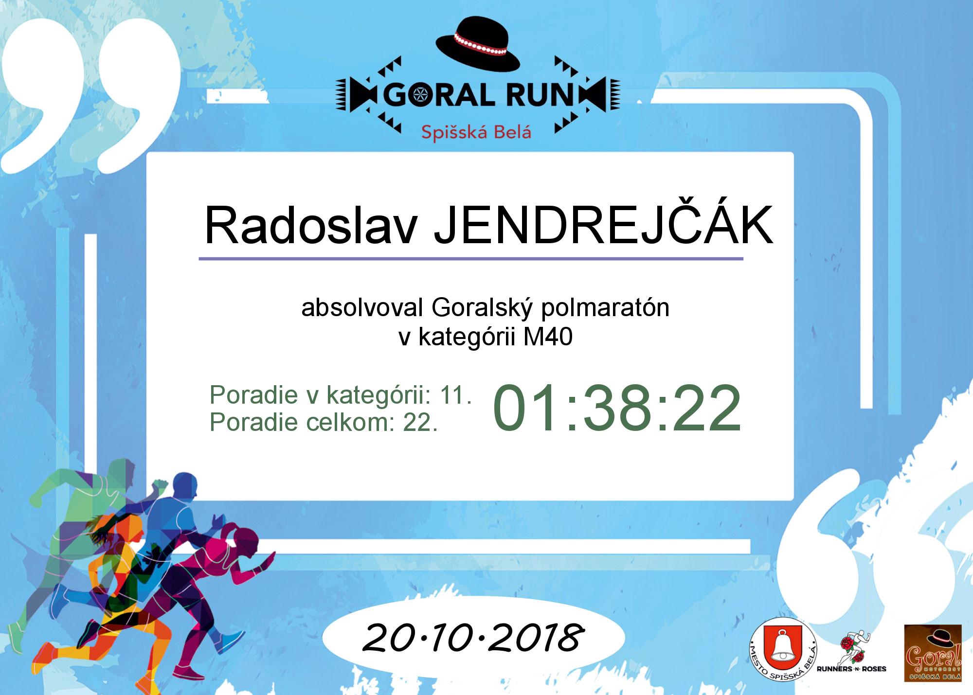 Účastnícky list pretekára JENDREJČÁK Radoslav