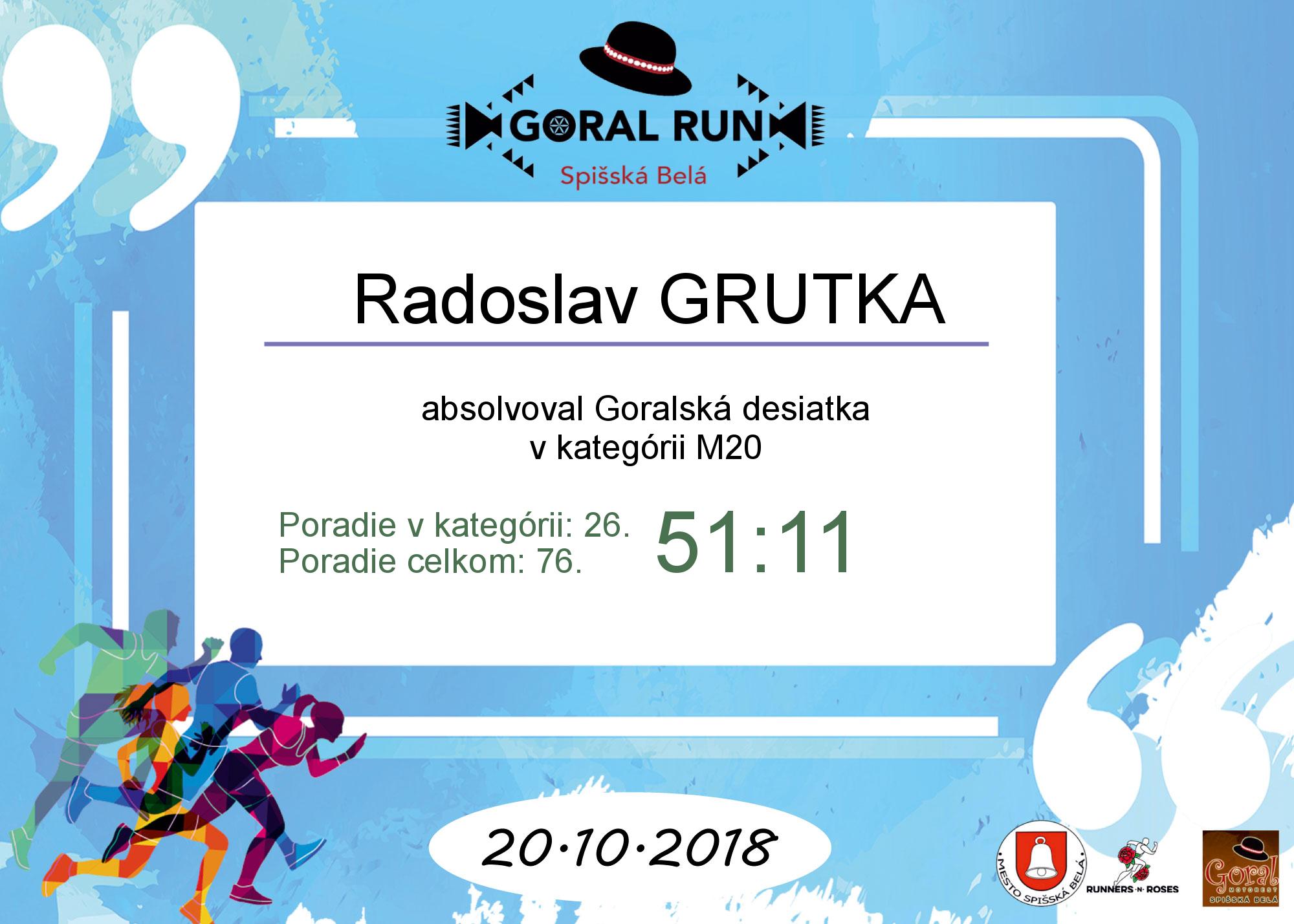 Účastnícky list pretekára GRUTKA Radoslav