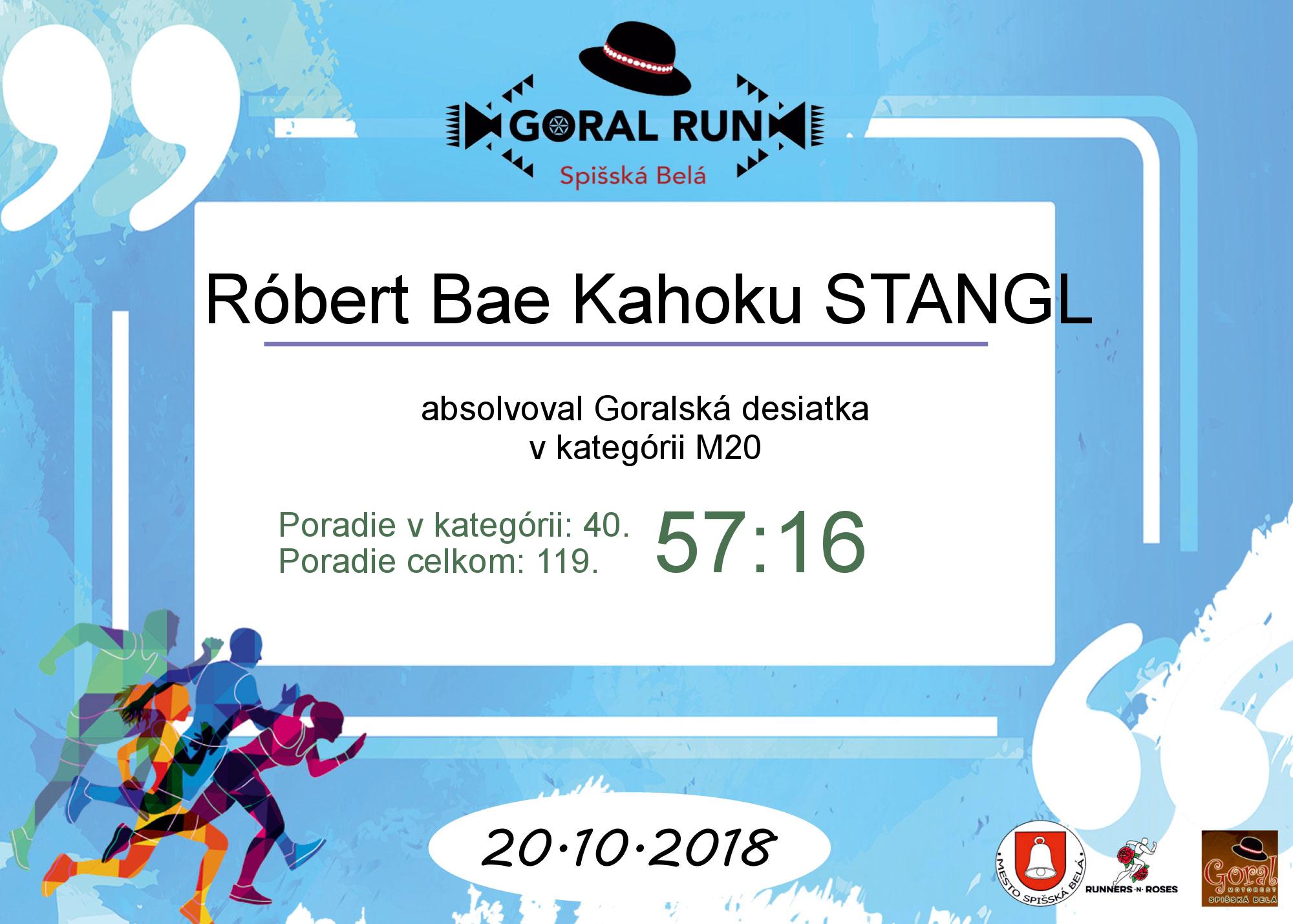 Účastnícky list pretekára STANGL Róbert Bae Kahoku