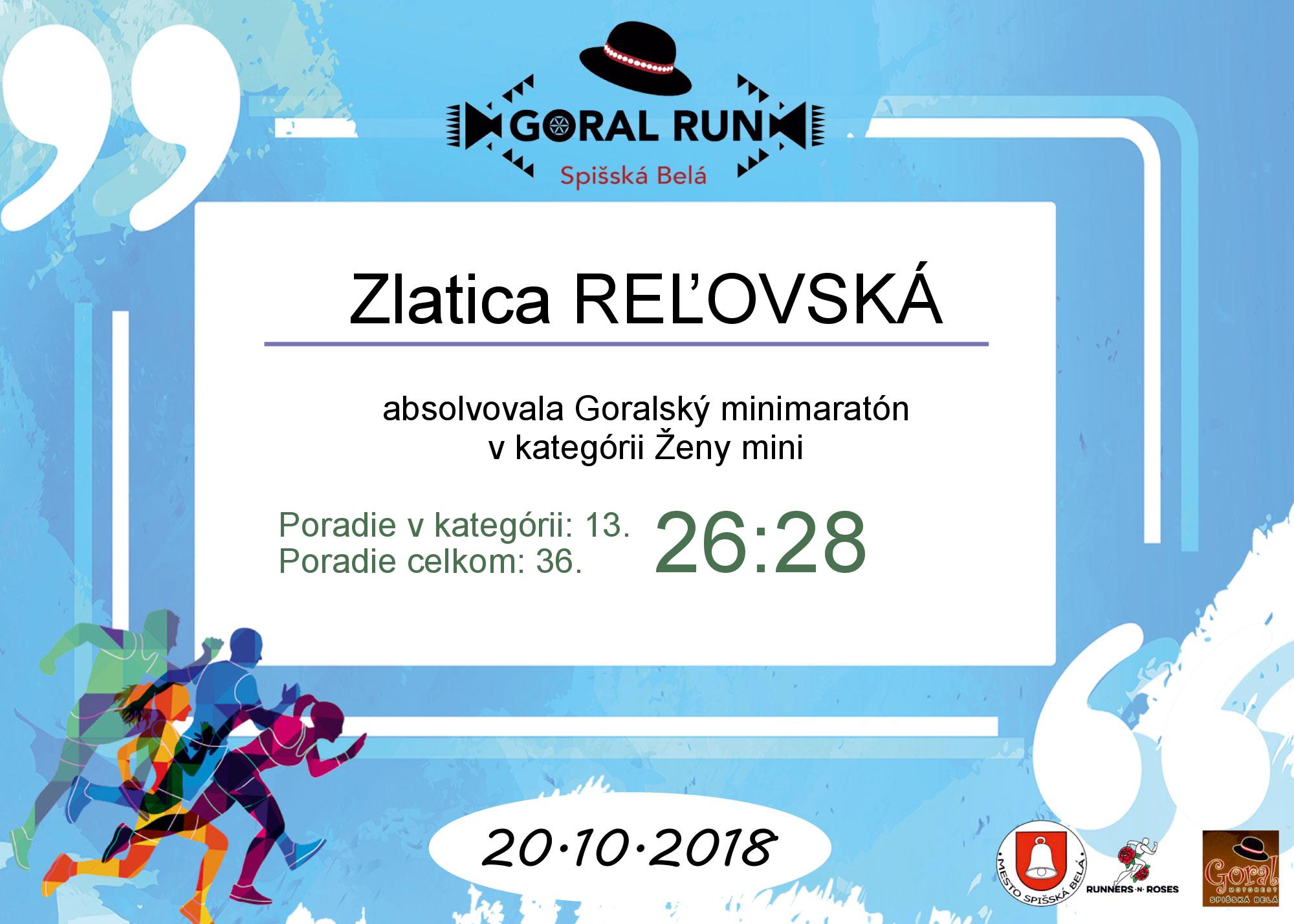 Účastnícky list pretekára REĽOVSKÁ Zlatica