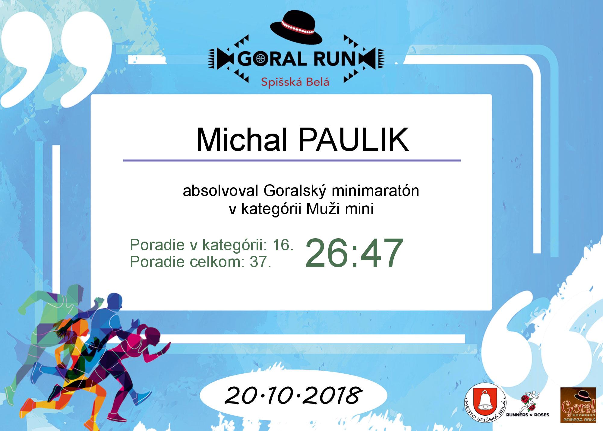 Účastnícky list pretekára PAULIK Michal