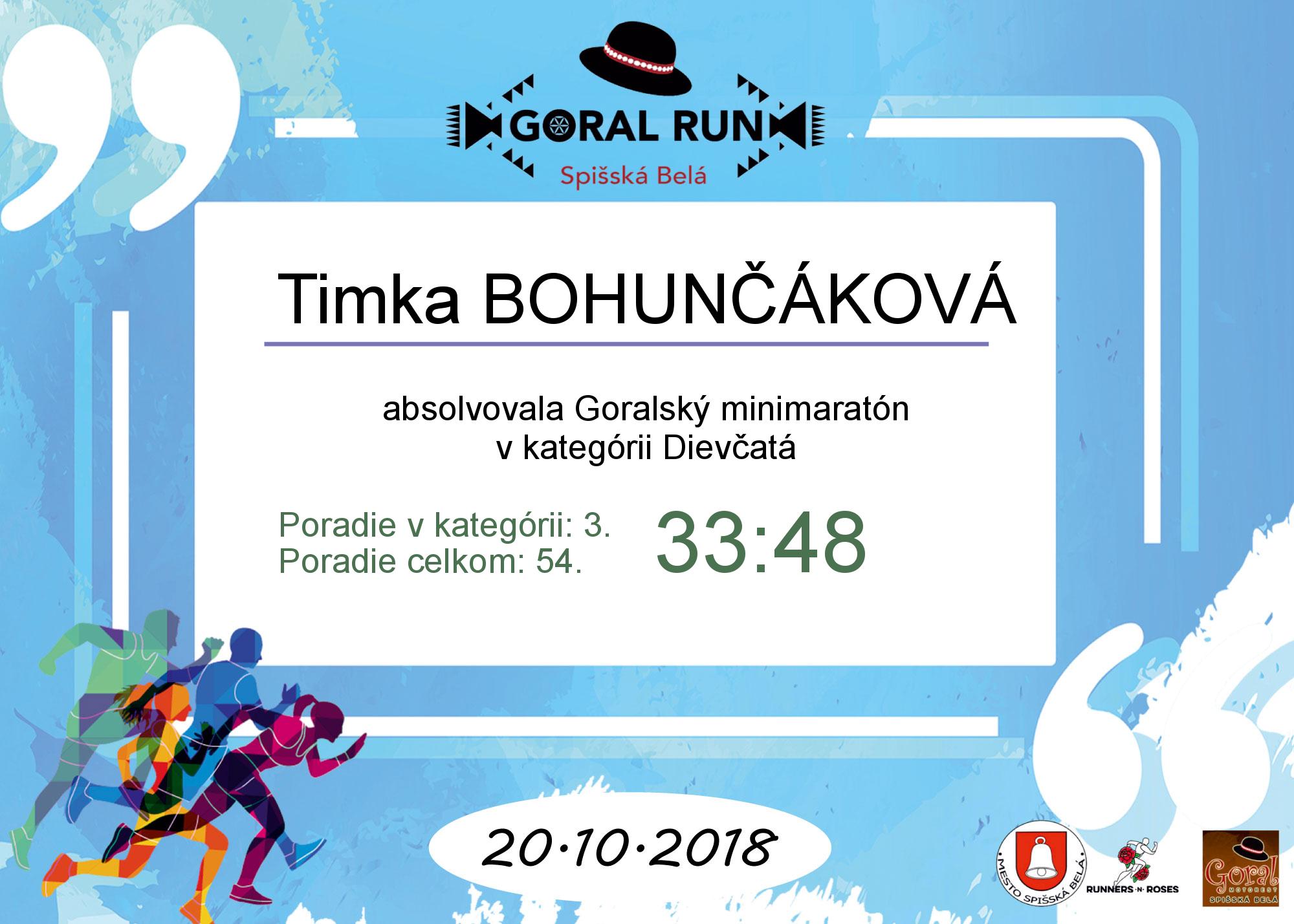 Účastnícky list pretekára BOHUNČÁKOVÁ Timka