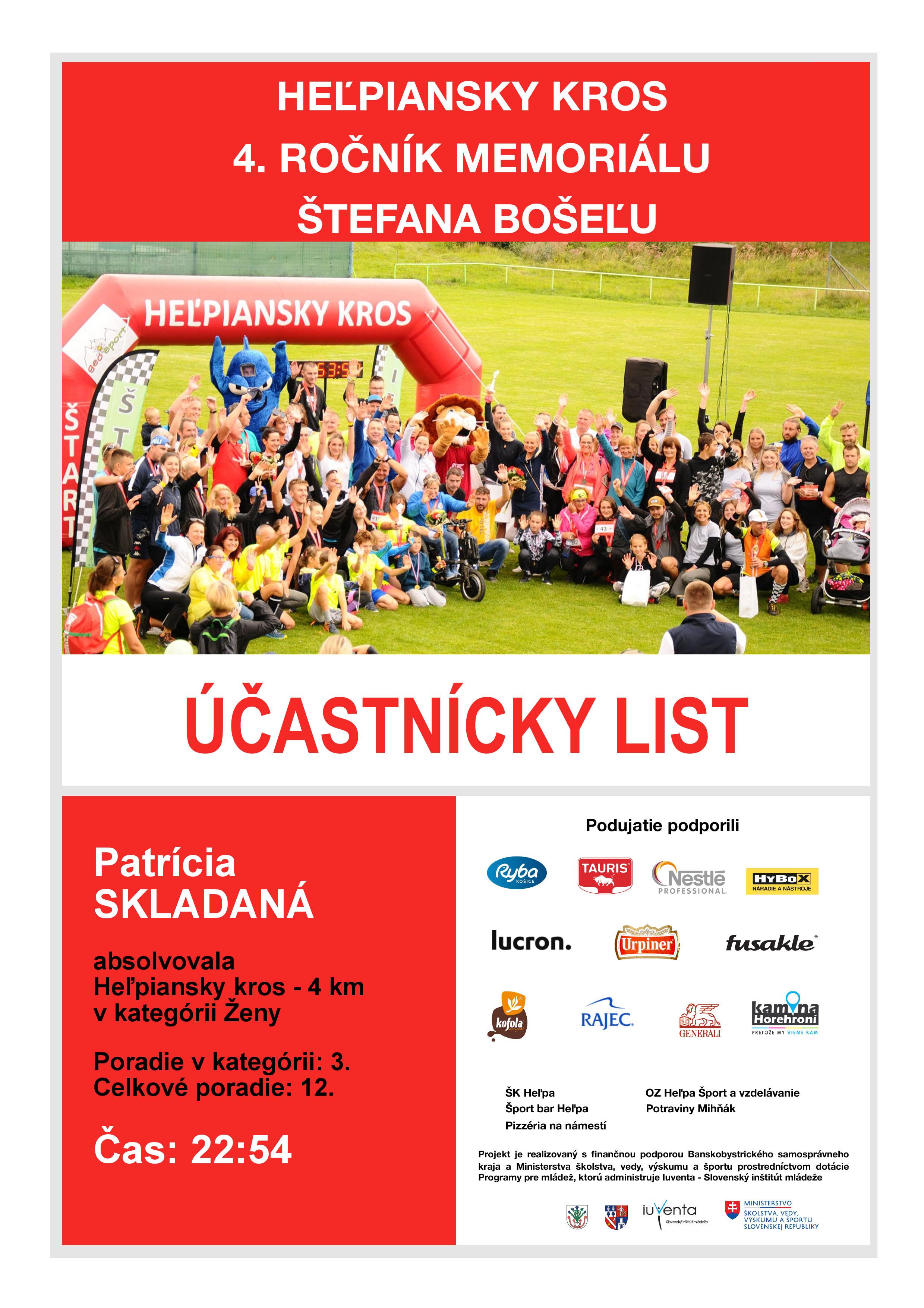Účastnícky list pretekára SKLADANÁ Patrícia