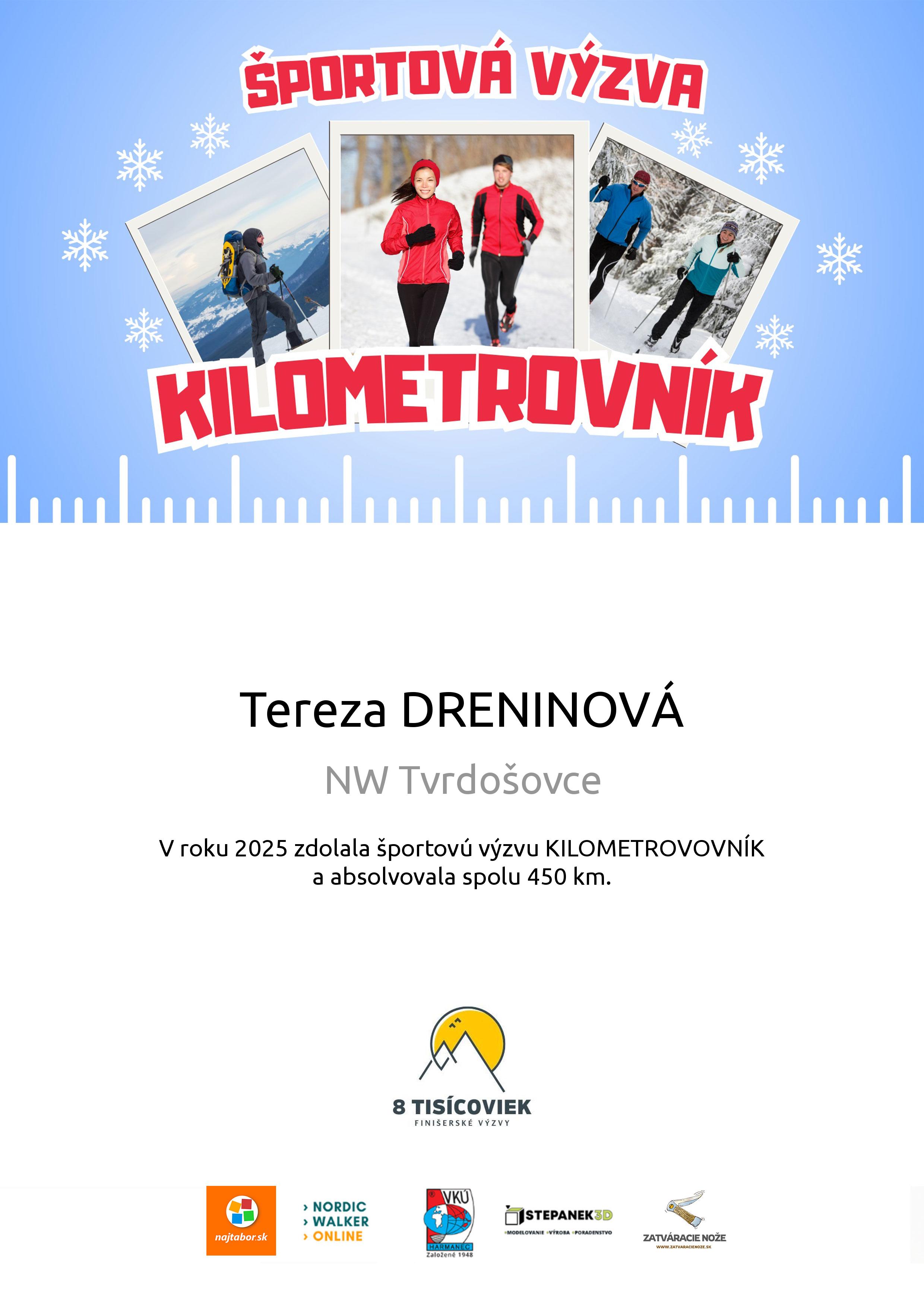 Účastnícky list pretekára DRENINOVÁ Tereza
