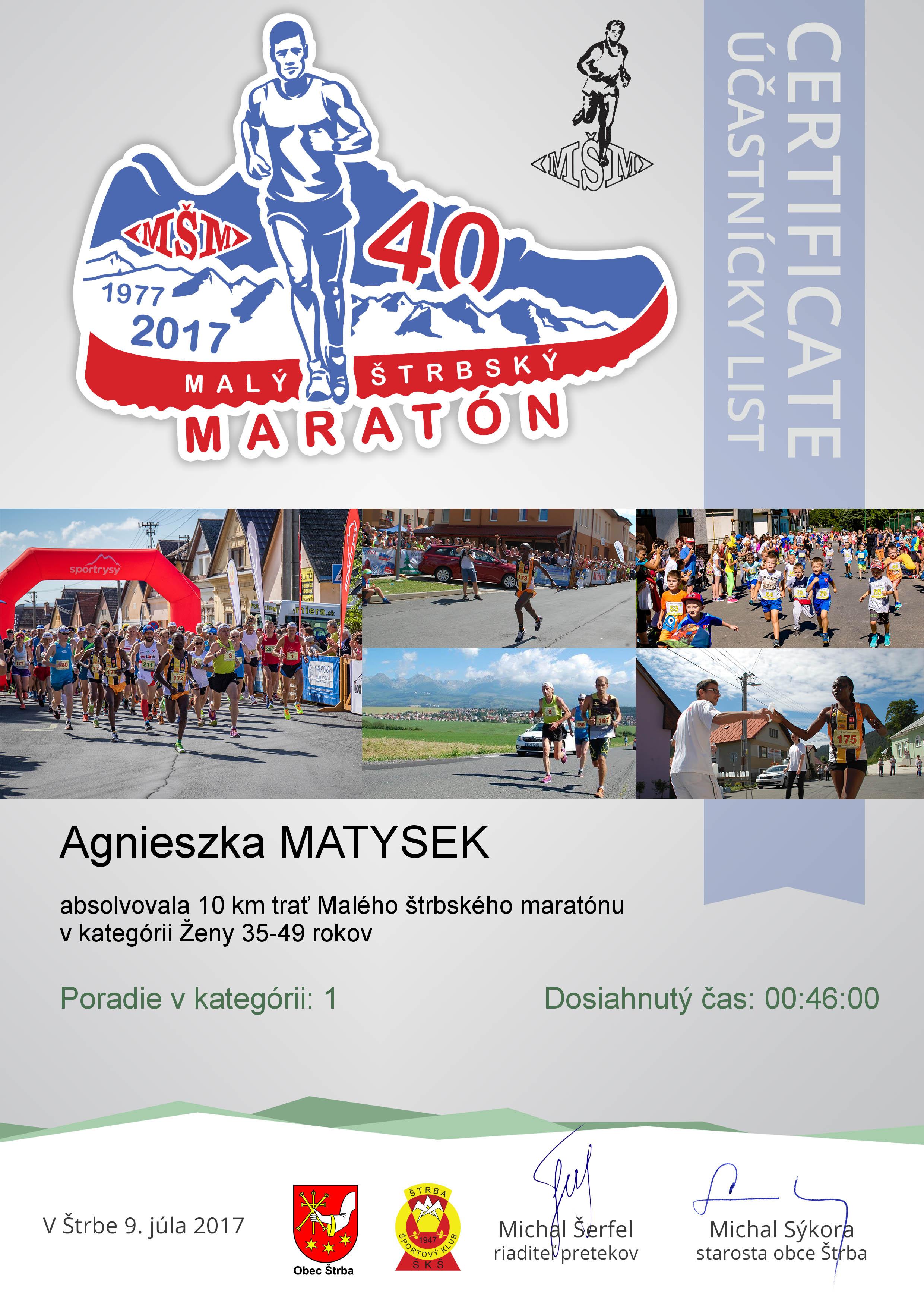 Účastnícky list pretekára MATYSEK Agnieszka