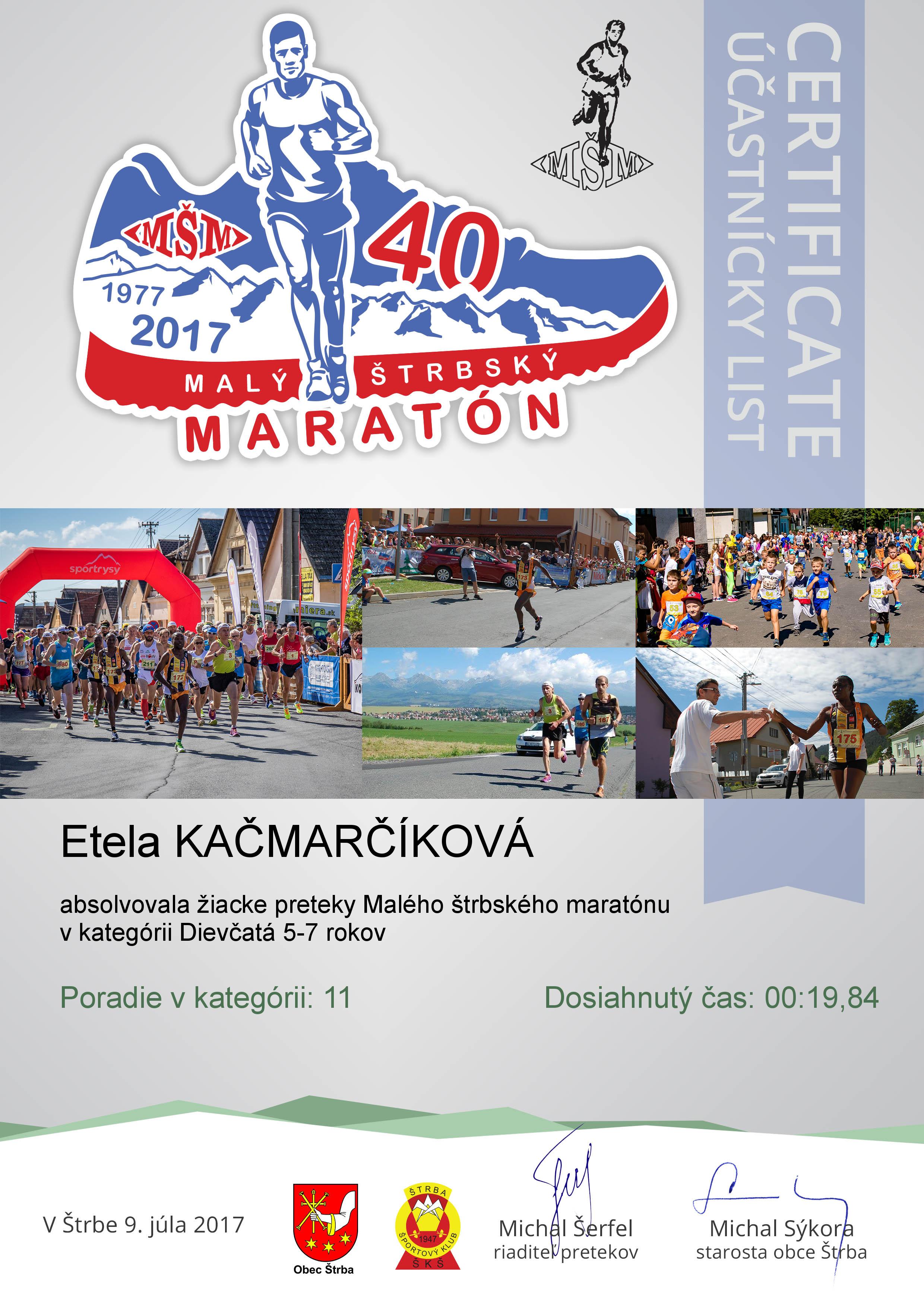 Účastnícky list pretekára KAČMARČÍKOVÁ Etela