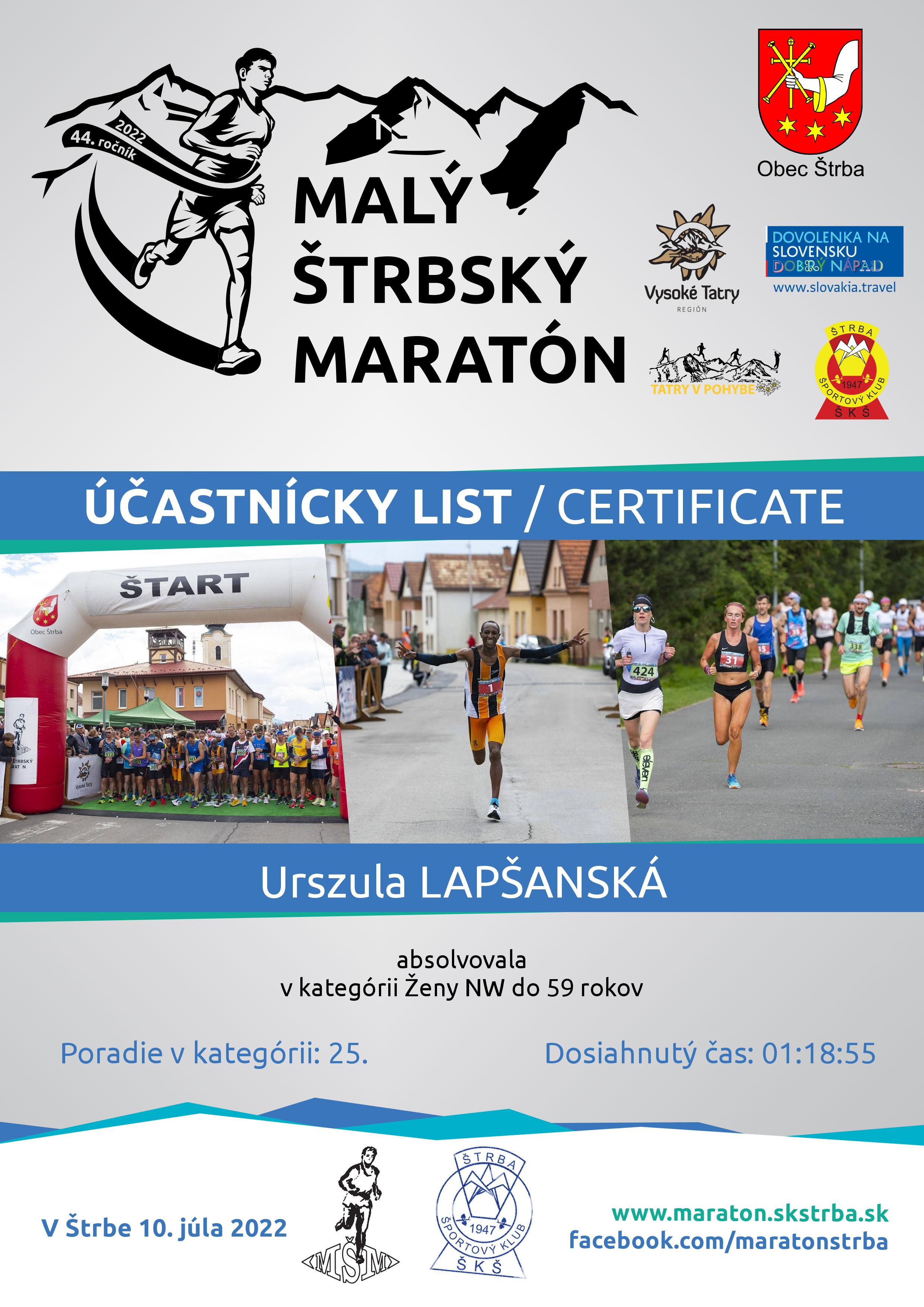 Účastnícky list pretekára LAPŠANSKÁ Urszula