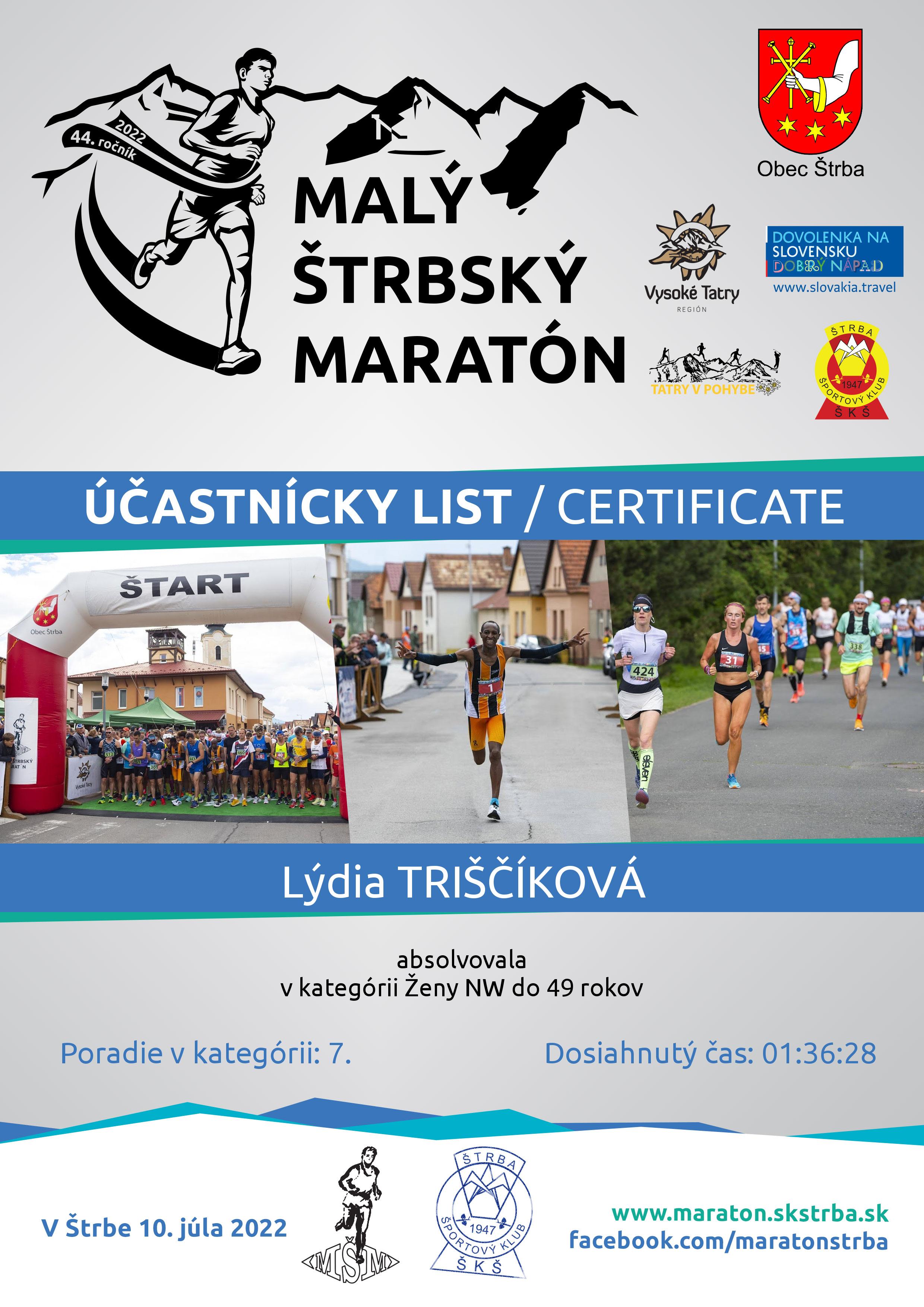 Účastnícky list pretekára TRIŠČÍKOVÁ Lýdia