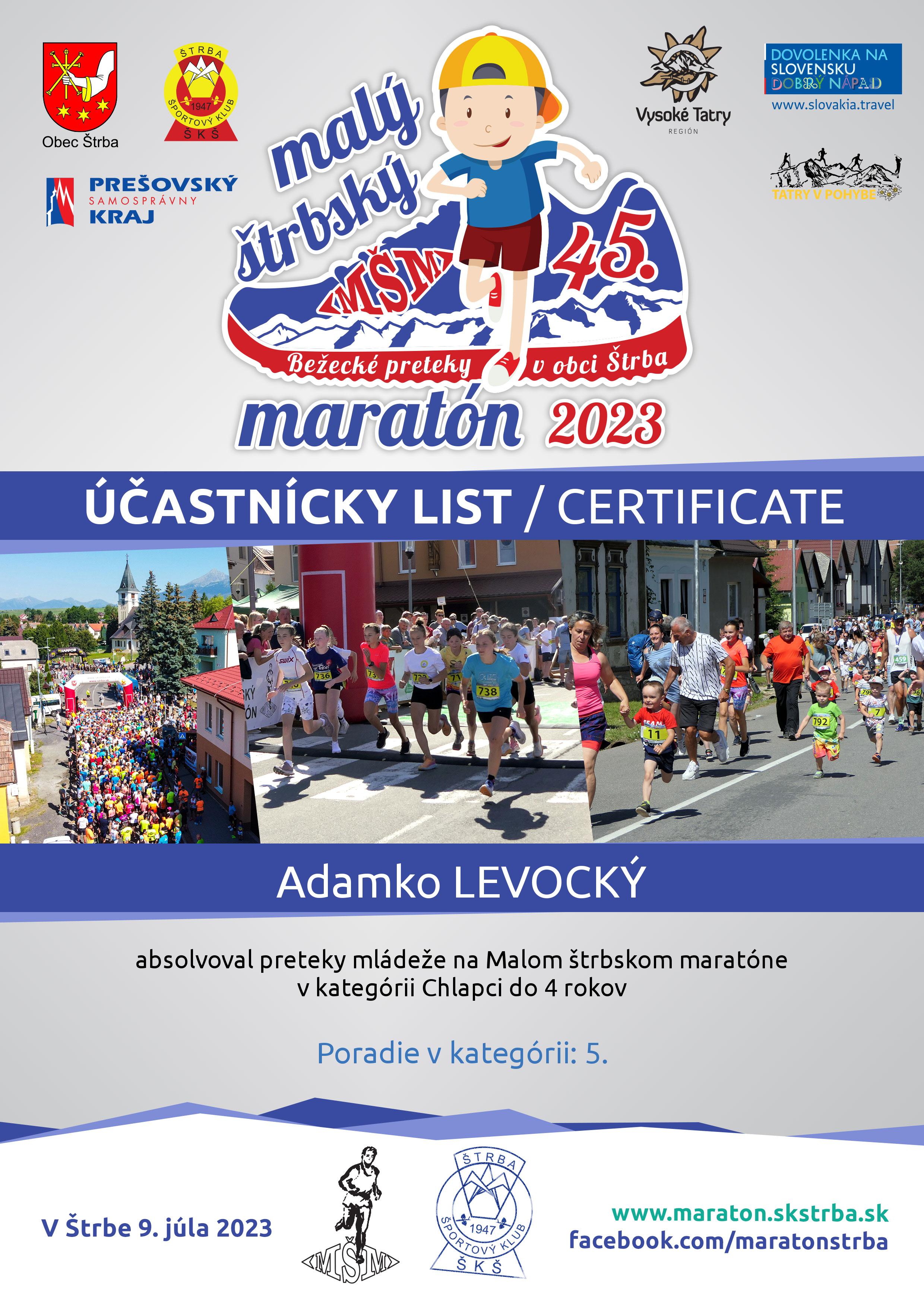 Účastnícky list pretekára LEVOCKÝ Adamko