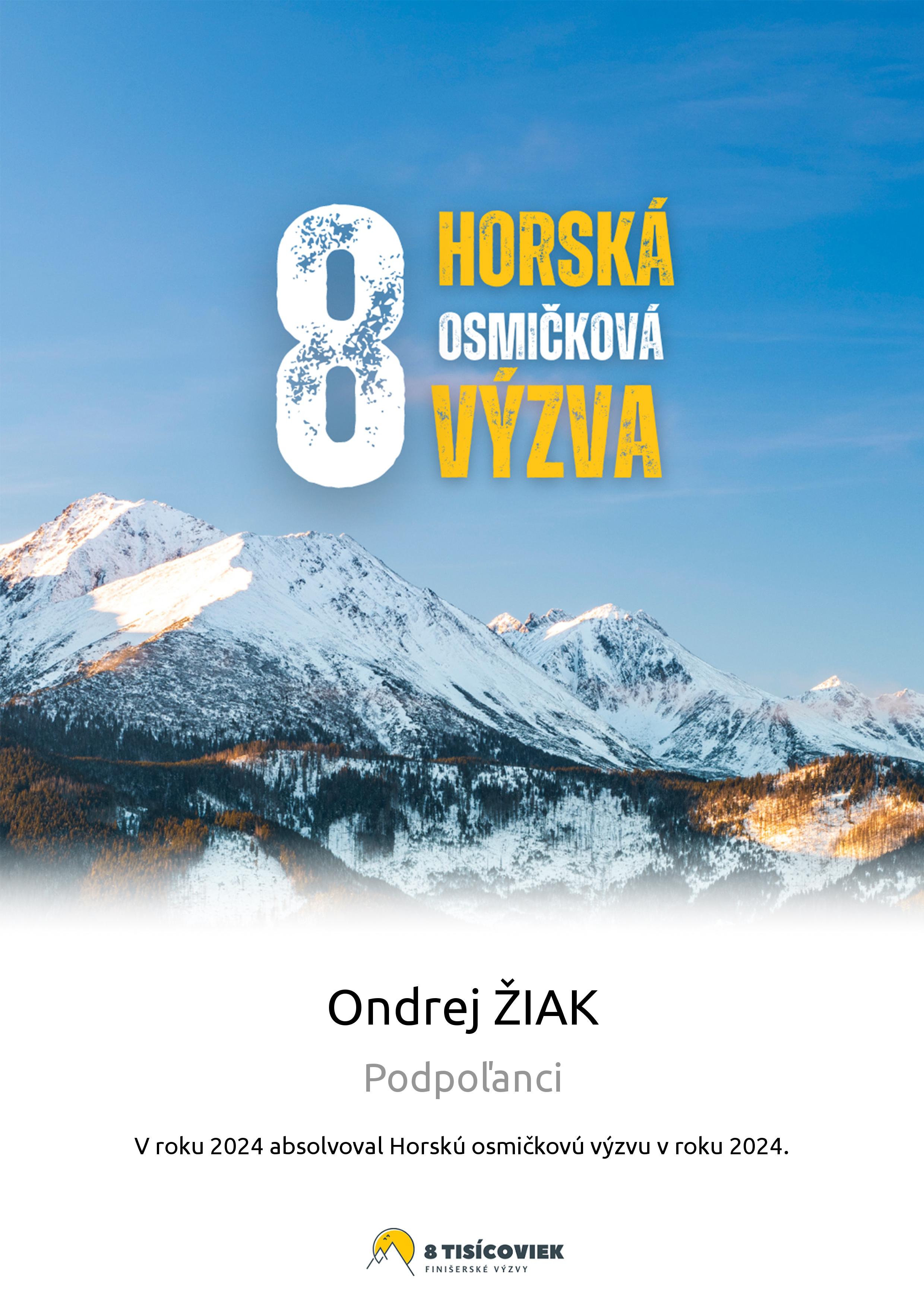 Účastnícky list pretekára ŽIAK Ondrej