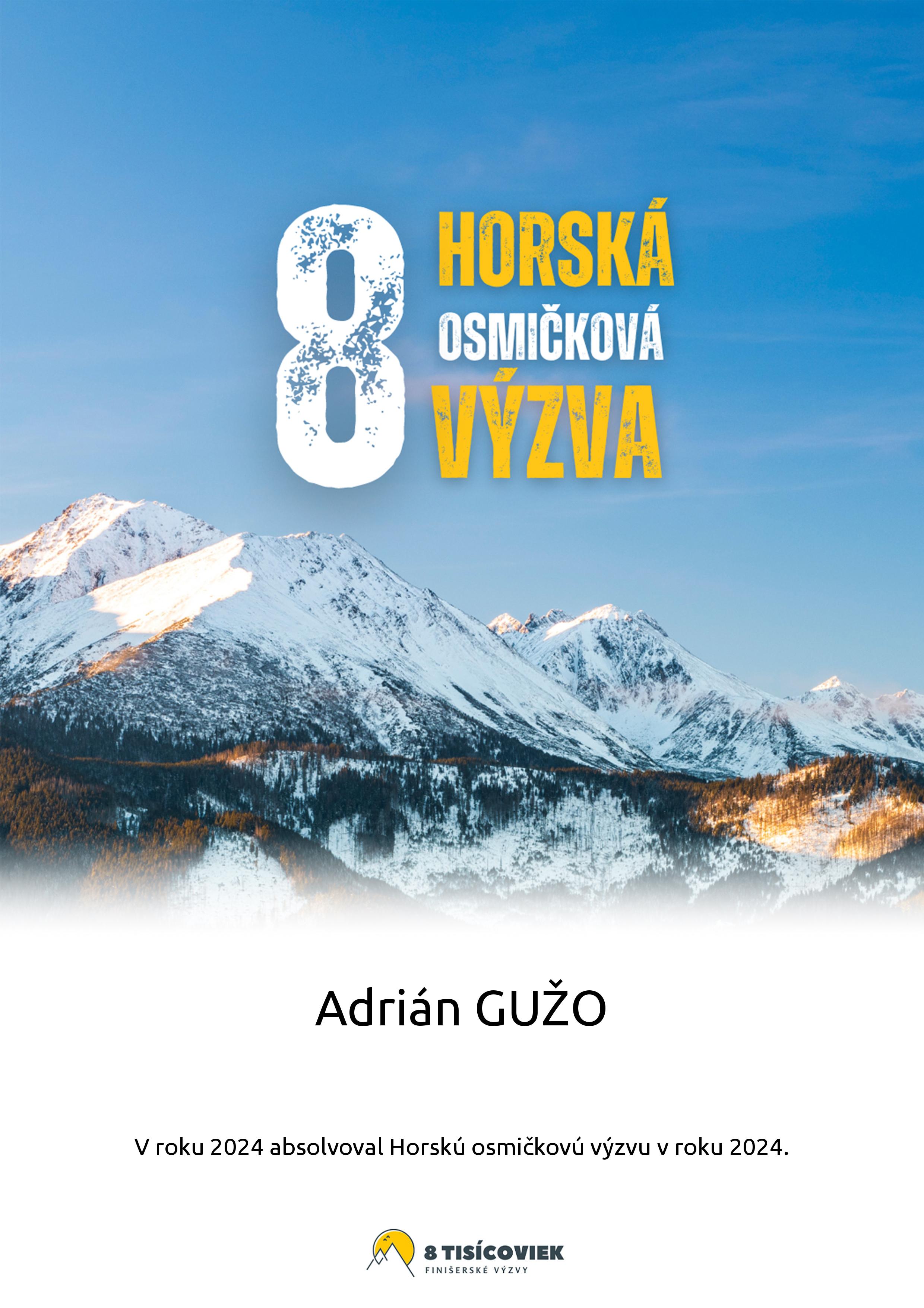 Účastnícky list pretekára GUŽO Adrián