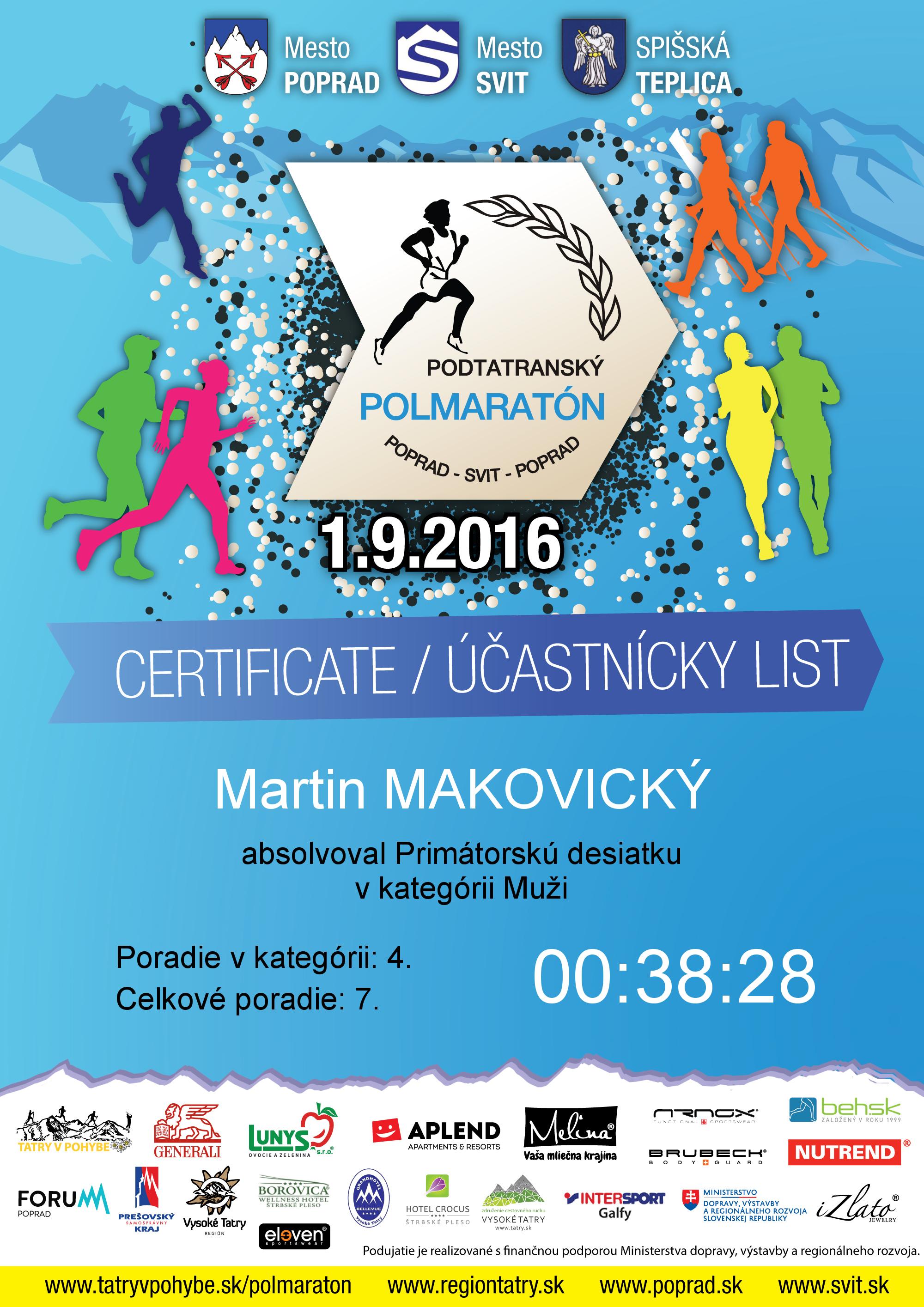 Účastnícky list pretekára MAKOVICKÝ Martin