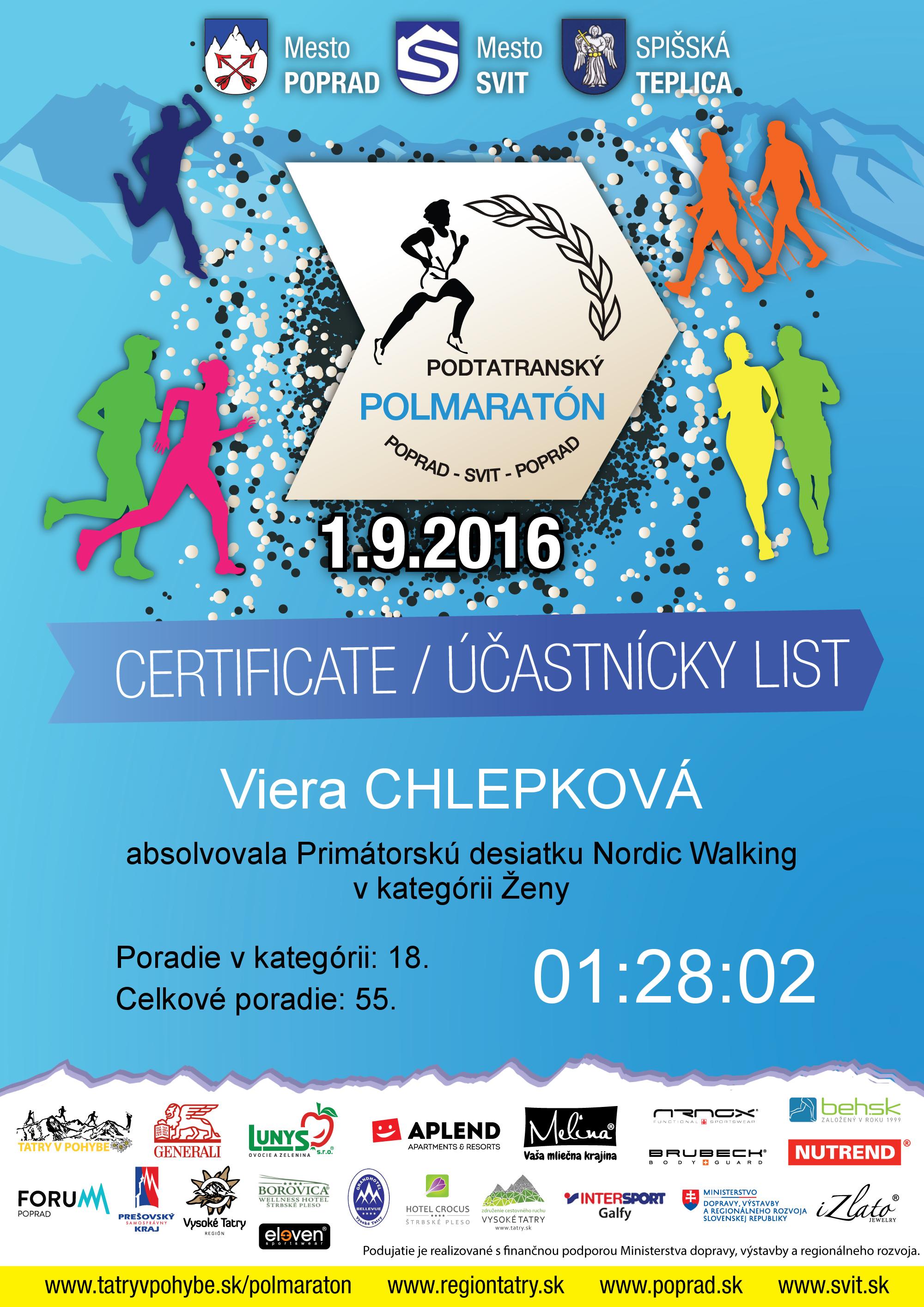 Účastnícky list pretekára CHLEPKOVÁ Viera