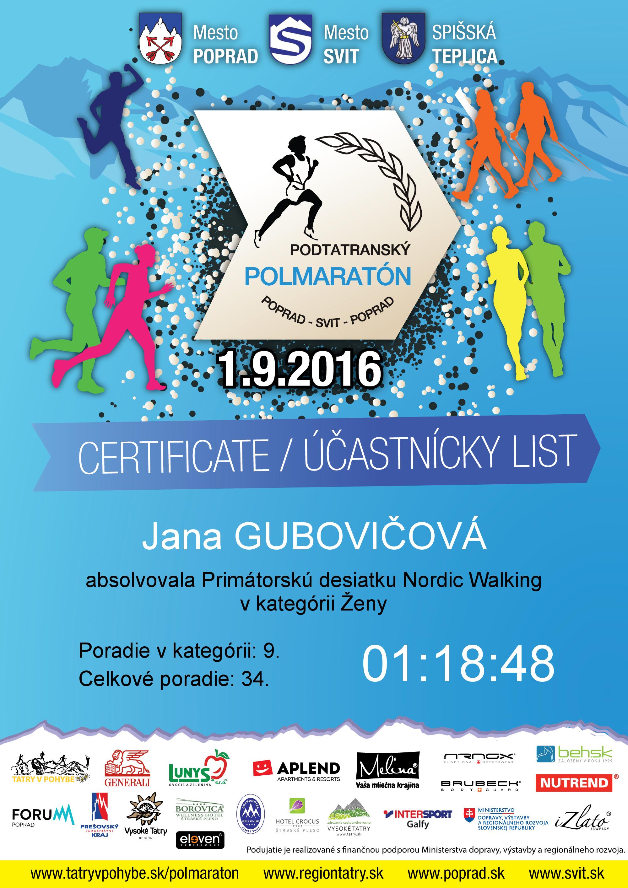 Účastnícky list pretekára GUBOVIČOVÁ Jana