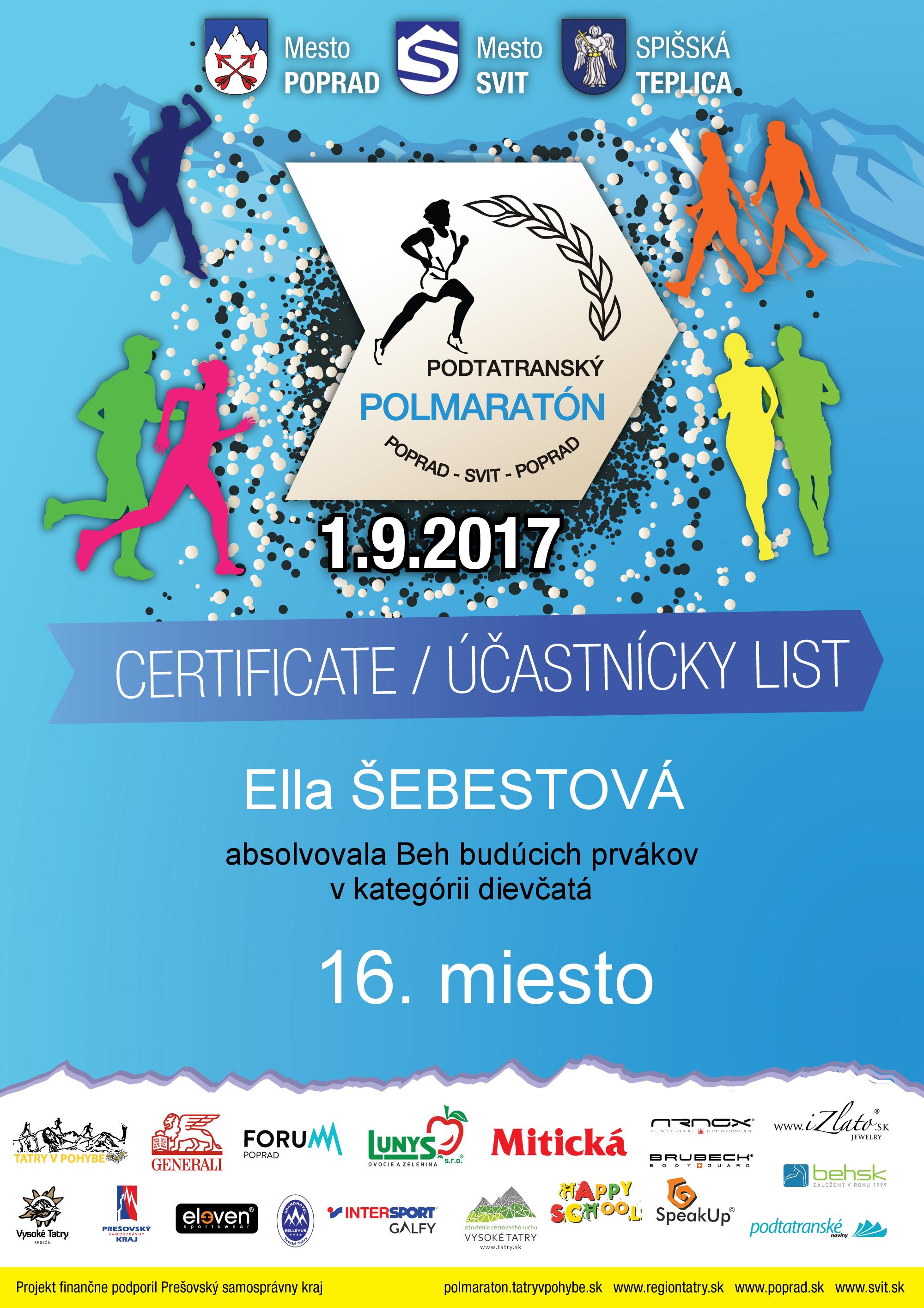 Účastnícky list pretekára ŠEBESTOVÁ Ella