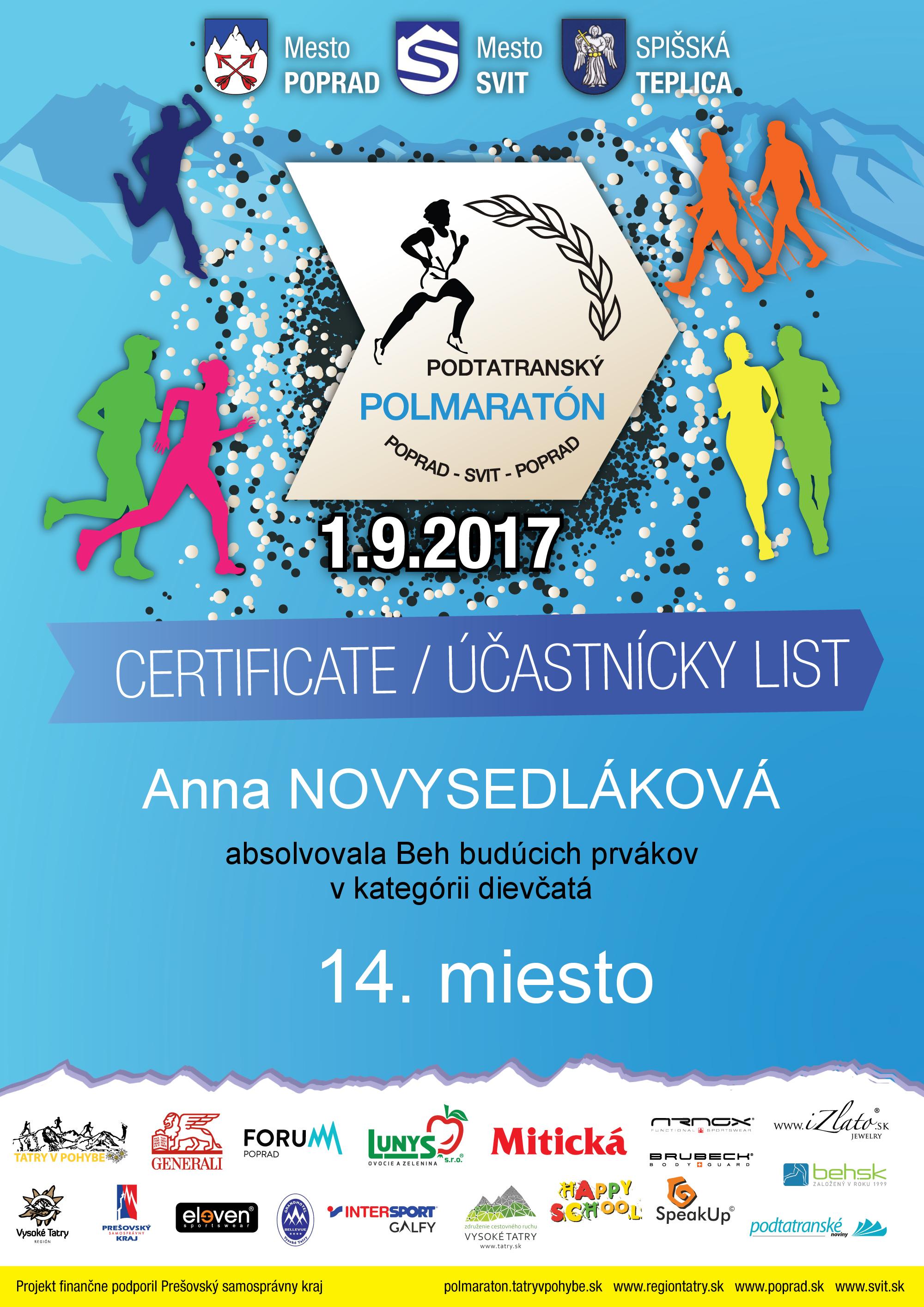 Účastnícky list pretekára NOVYSEDLÁKOVÁ Anna