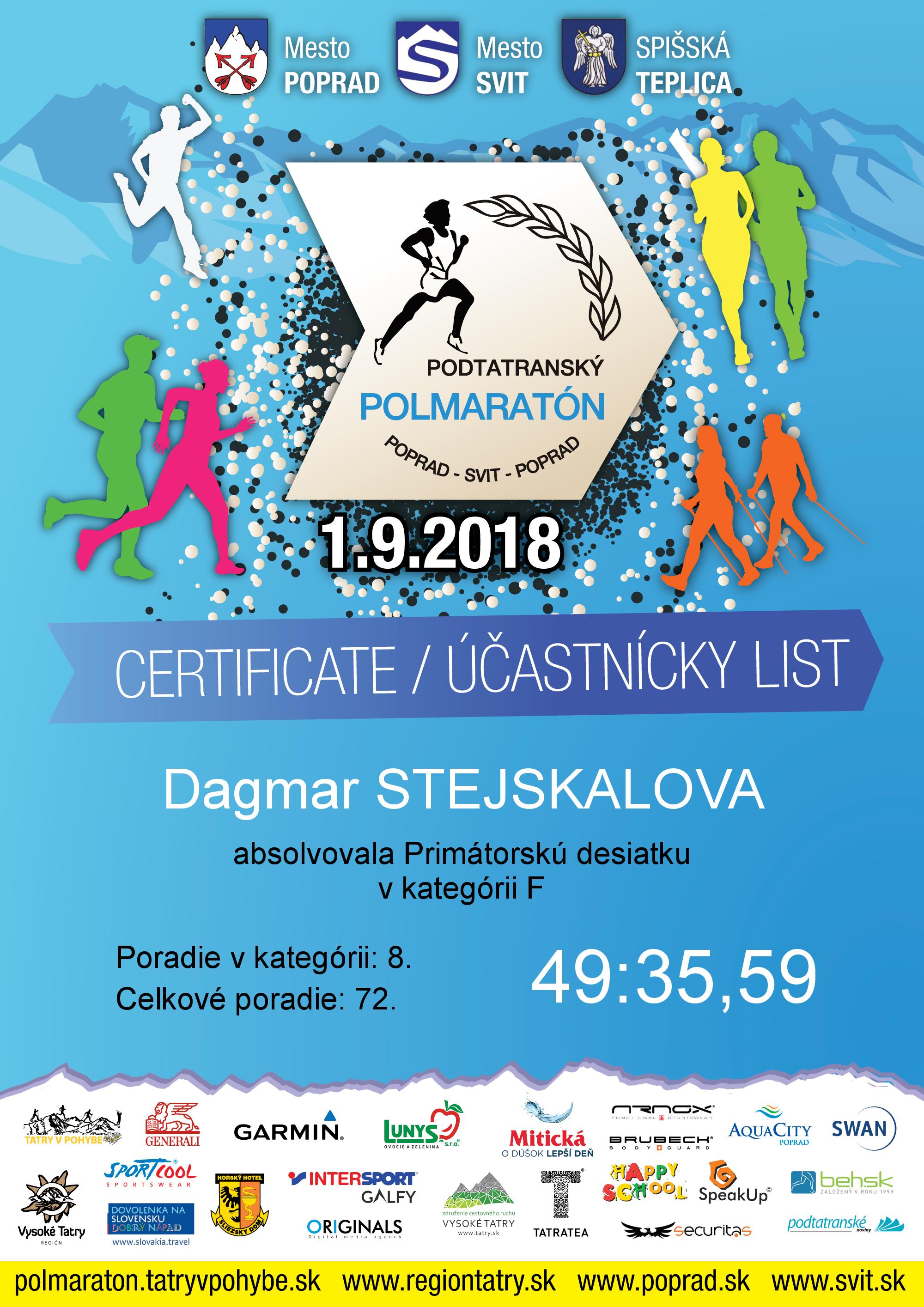 Účastnícky list pretekára STEJSKALOVA Dagmar