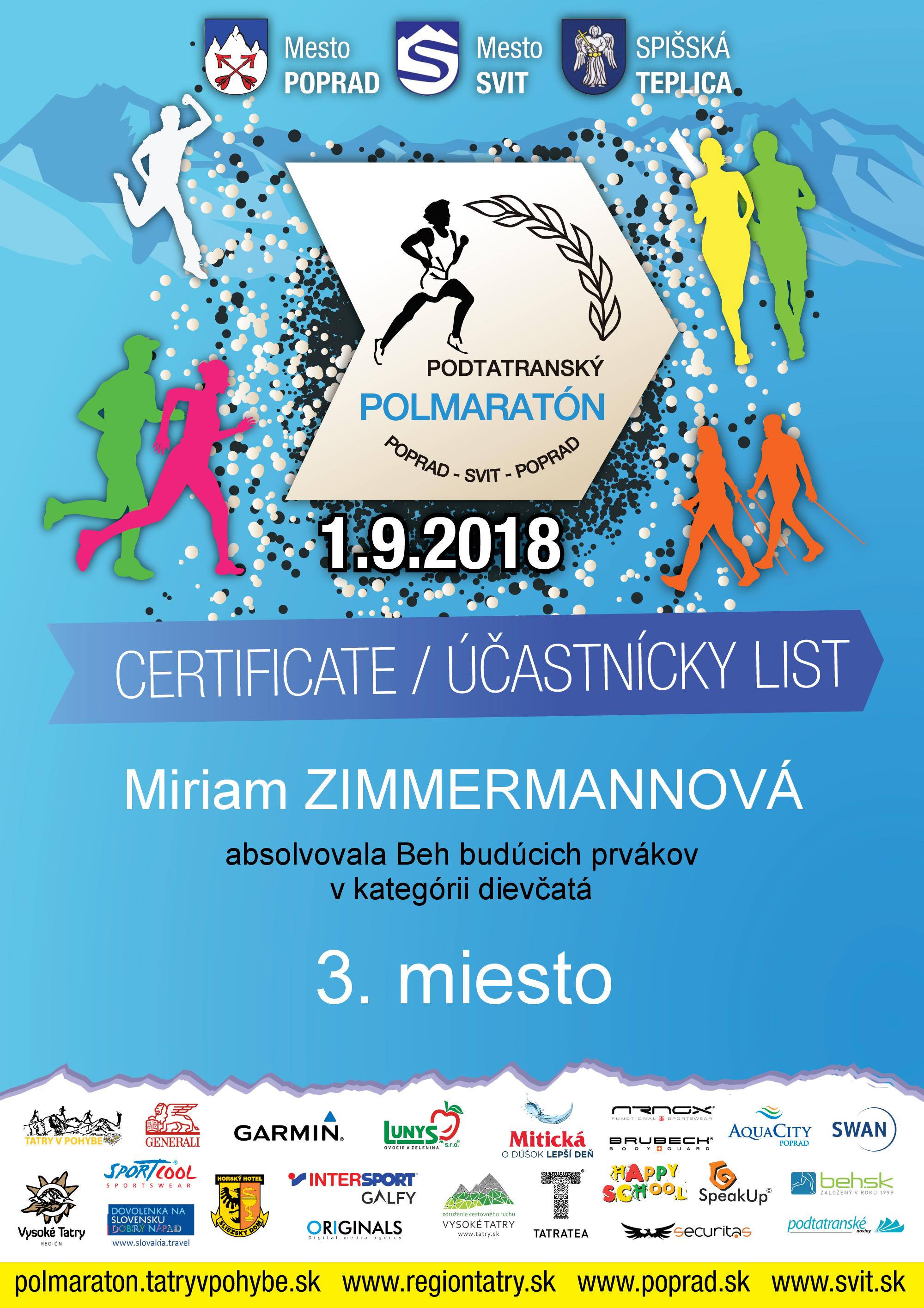 Účastnícky list pretekára ZIMMERMANNOVÁ Miriam