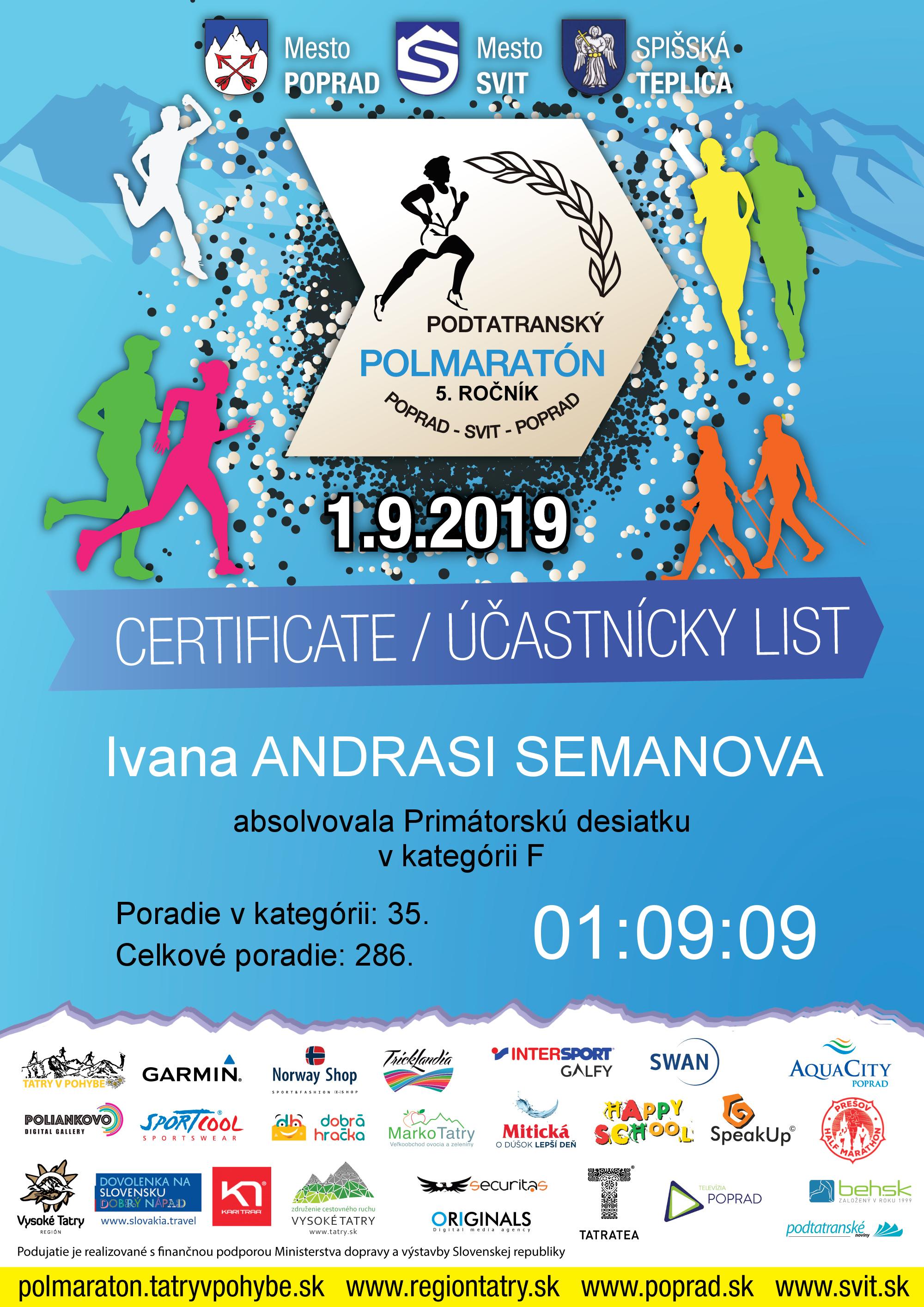 Účastnícky list pretekára ANDRASI SEMANOVA Ivana