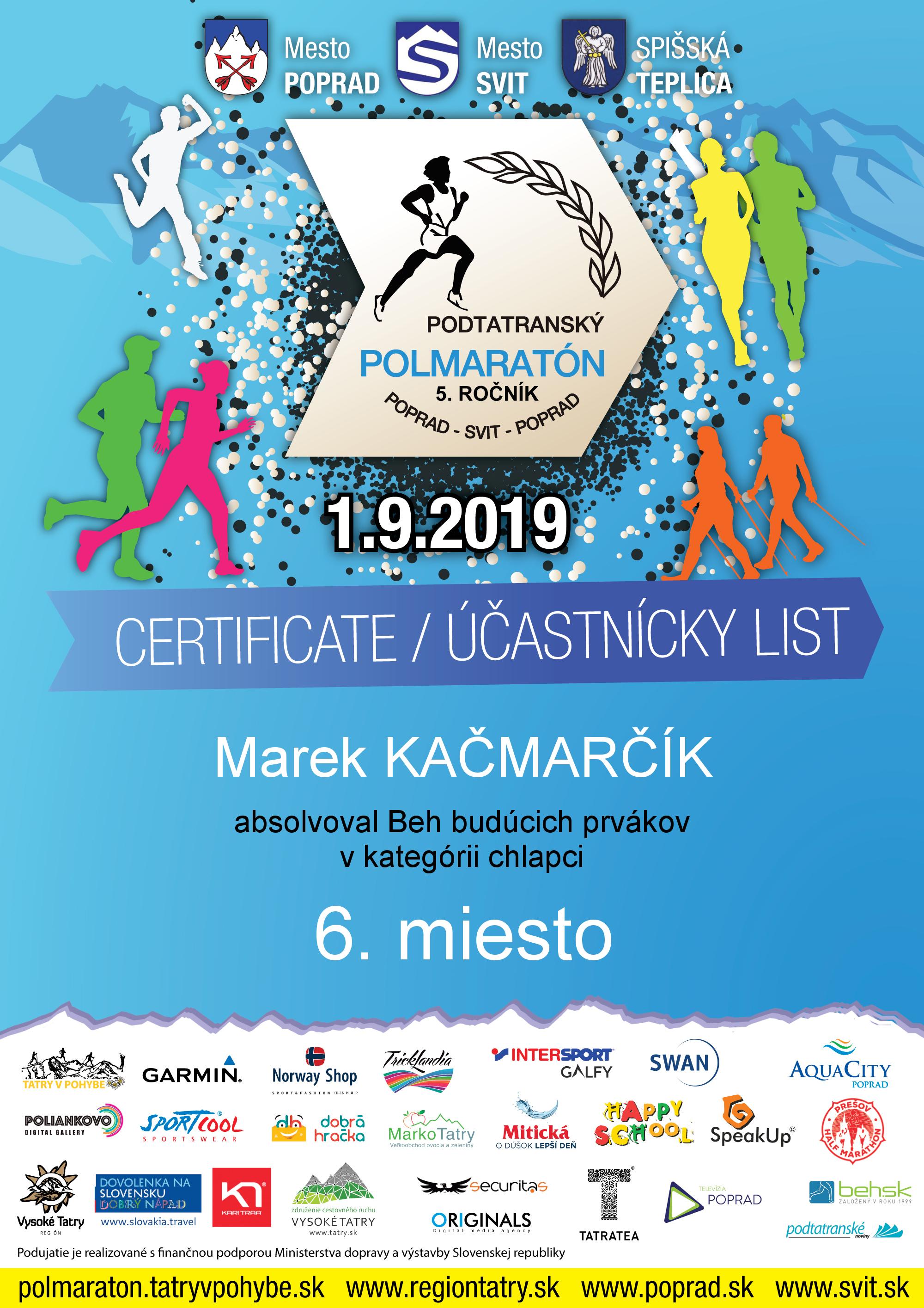 Účastnícky list pretekára KAČMARČÍK Marek