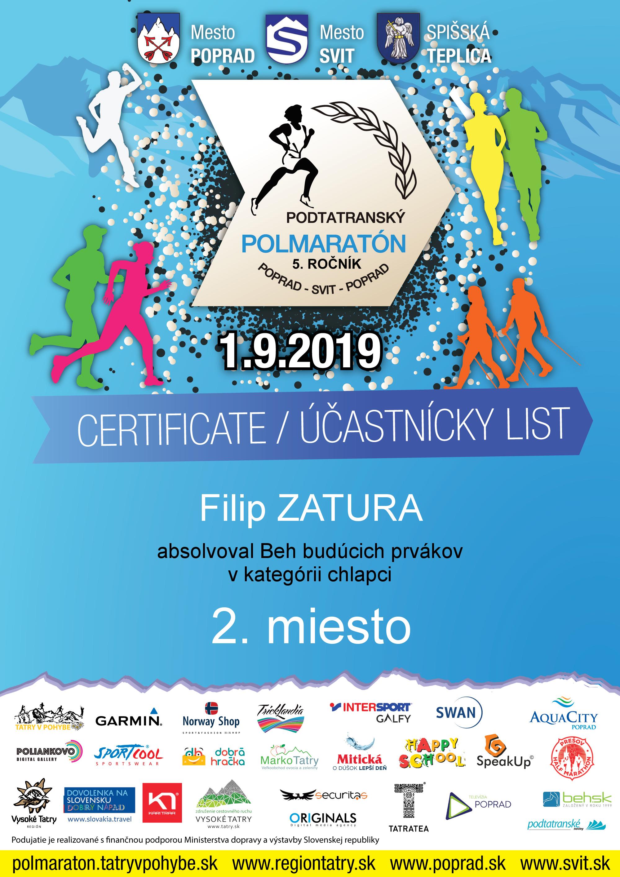 Účastnícky list pretekára ZATURA Filip