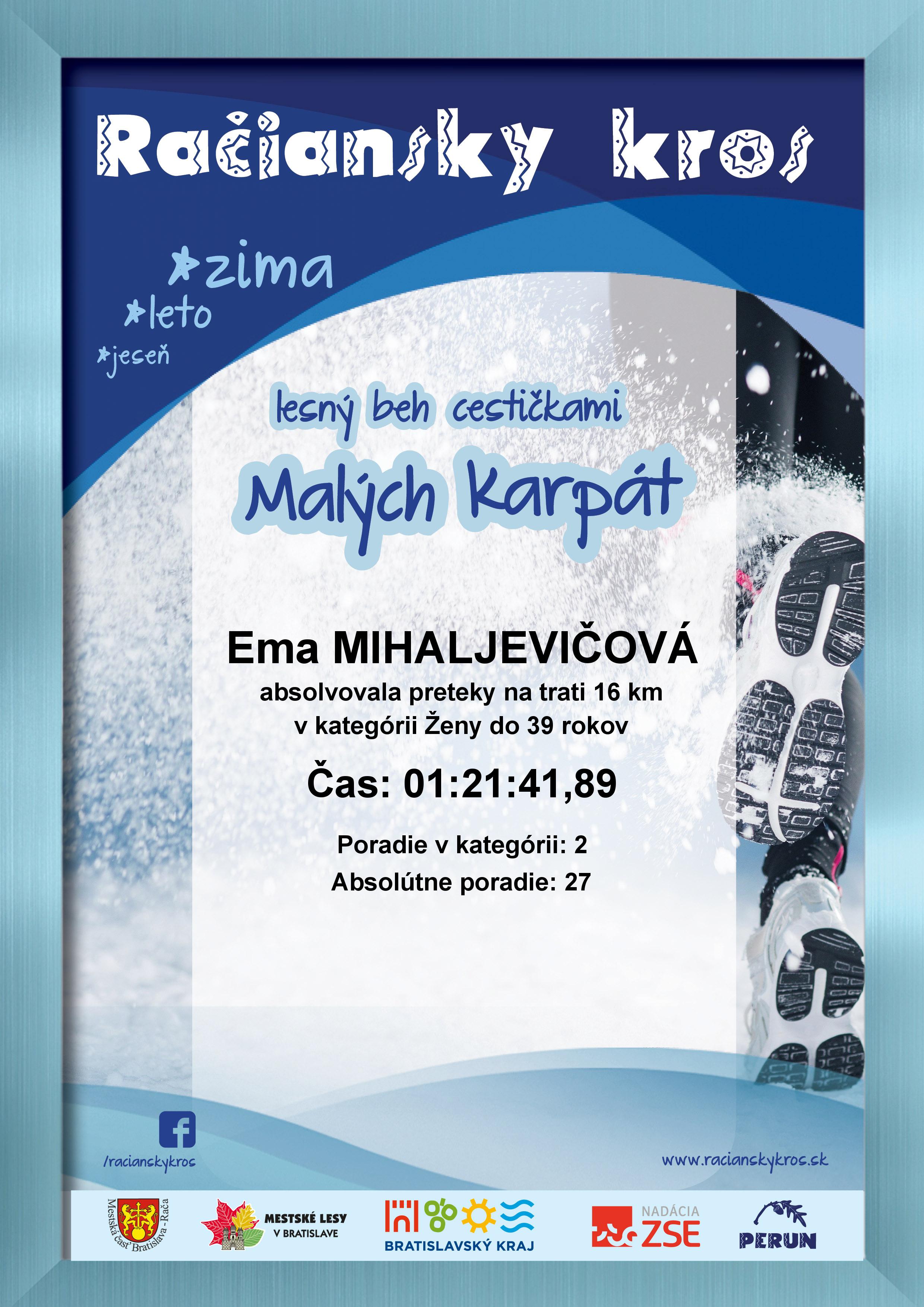 Účastnícky list pretekára MIHALJEVIČOVÁ Ema