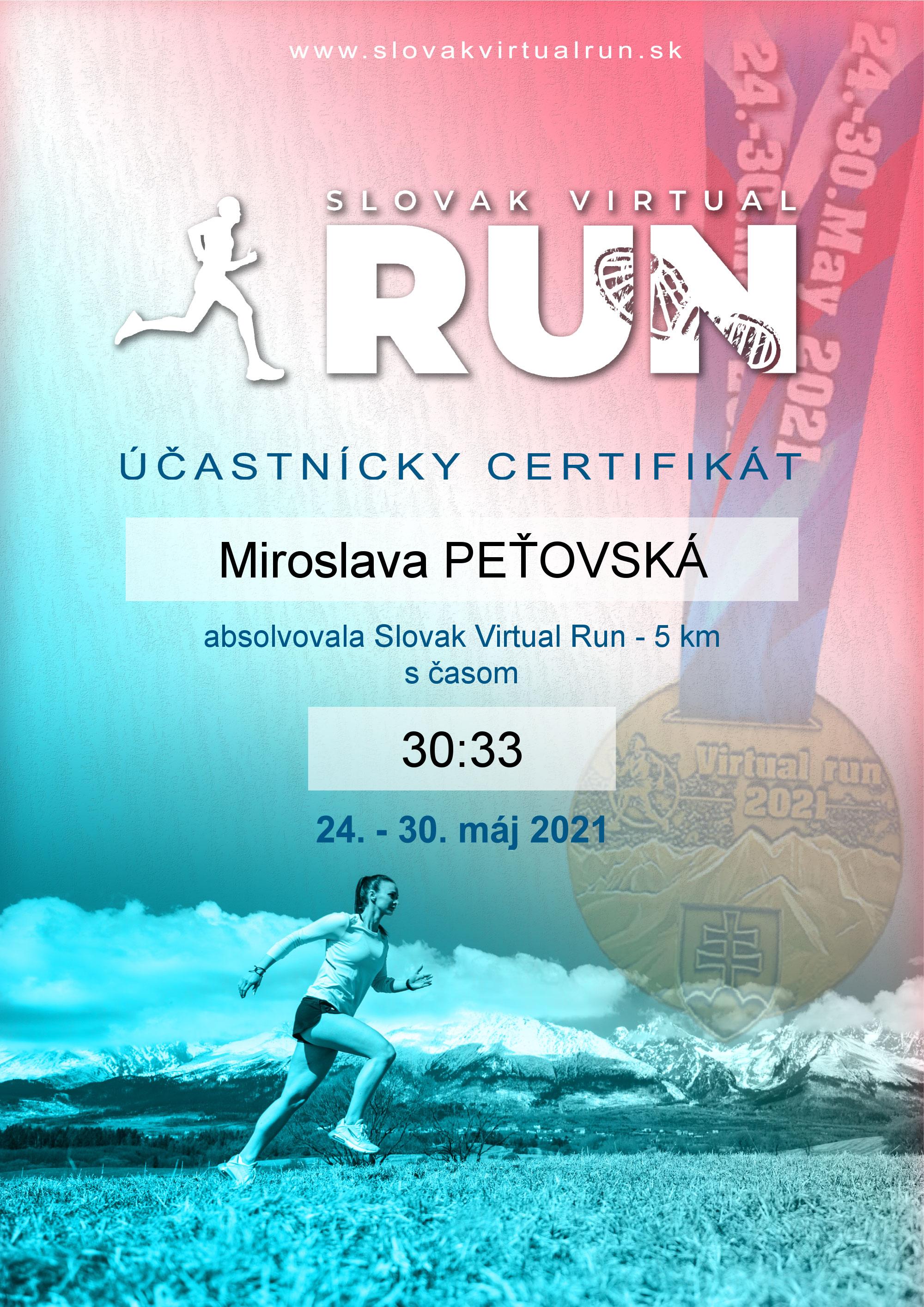 Účastnícky list pretekára PEŤOVSKÁ Miroslava