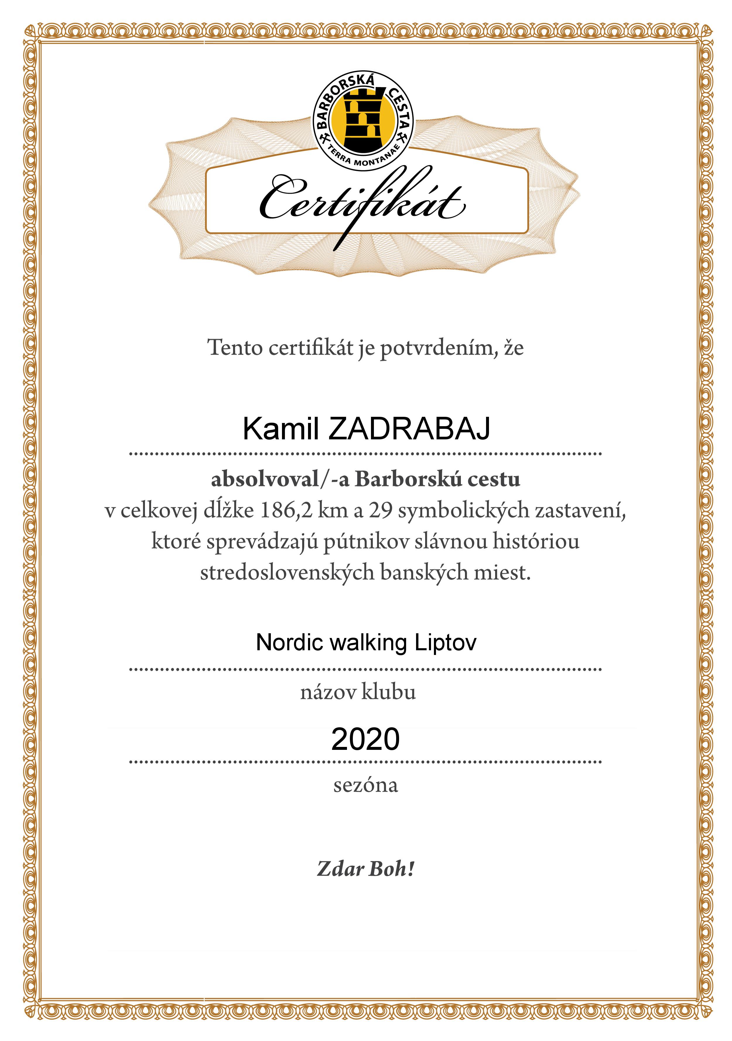Spoznaj sám seba – prvá finišerská výzva pre nordic walkerov v roku 2020. Podstatou výzvy je absolvovanie historicky známej Barborskej cesty technikou nordic walking. Trasa pozostáva s deviatich etáp, ktoré sú vyšpecifikované v popise trasy. Okrem poznávania krásnej slovenskej prírody, historických miest a kultúrnych pamiatok je to príležitosť poznať najmä sám seba. Svoju telesnú i psychickú kondíciu, myslenie i hodnoty.