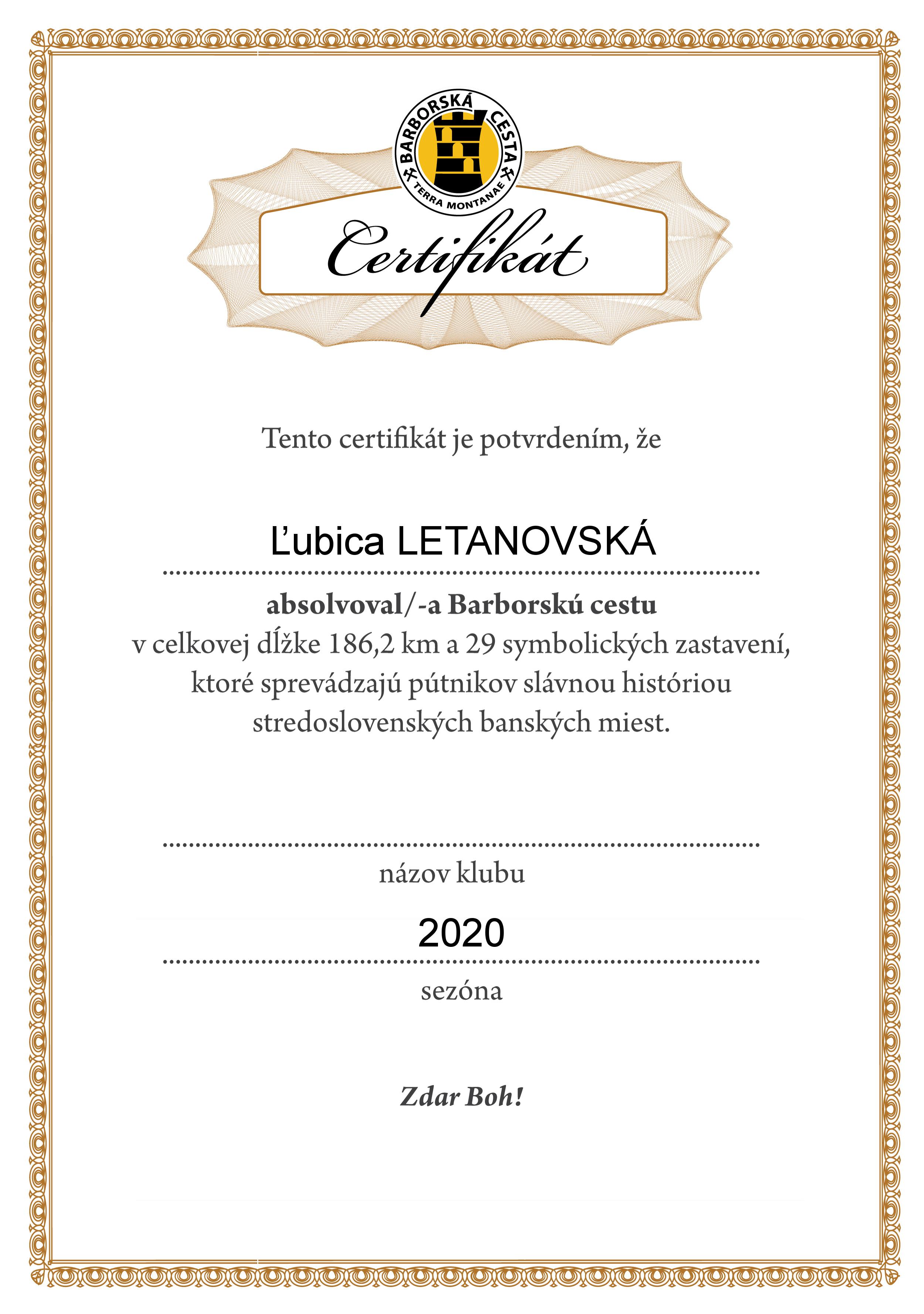 Účastnícky list pretekára LETANOVSKÁ Ľubica
